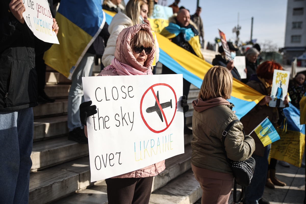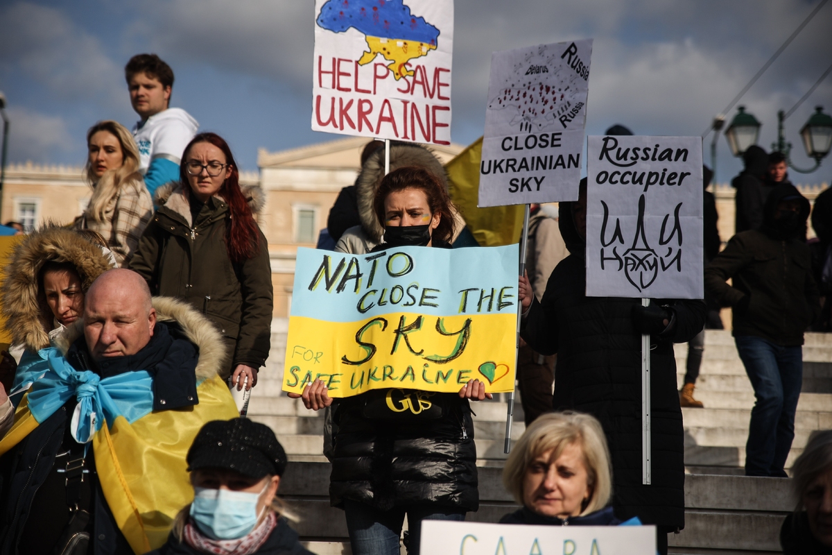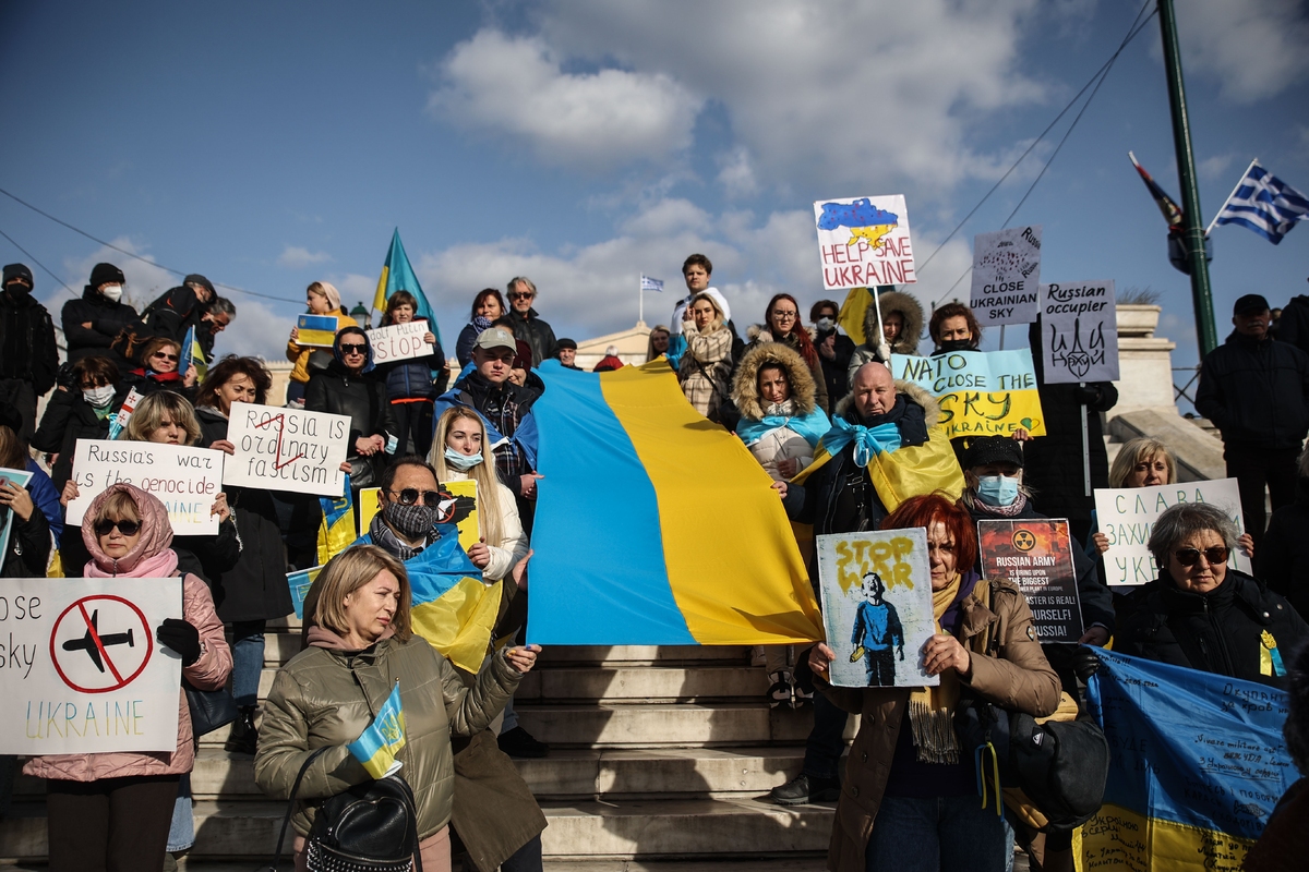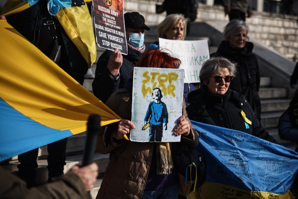 ΕΙΚΟΝΕΣ: Συγκέντρωση στο κέντρο της Αθήνας ενάντια στον πόλεμο στην Ουκρανία
