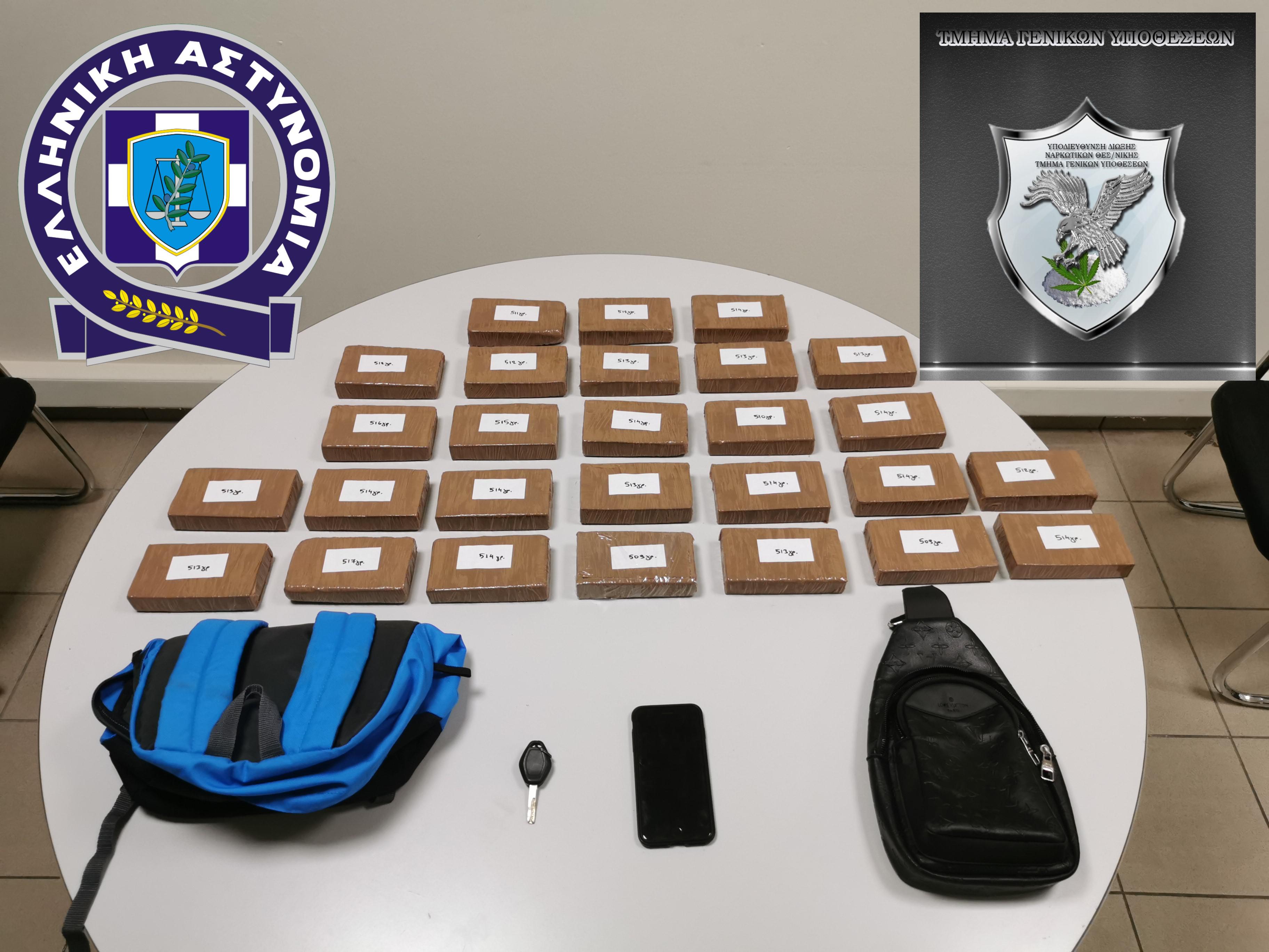 Σε έρευνες που πραγματοποιήθηκαν στο όχημα αλλά και στην οικία του 33χρονου βρέθηκαν και κατασχέθηκαν συνολικά (27) δέματα ηρωίνης συνολικού βάρους (13.852) γραμμαρίων.