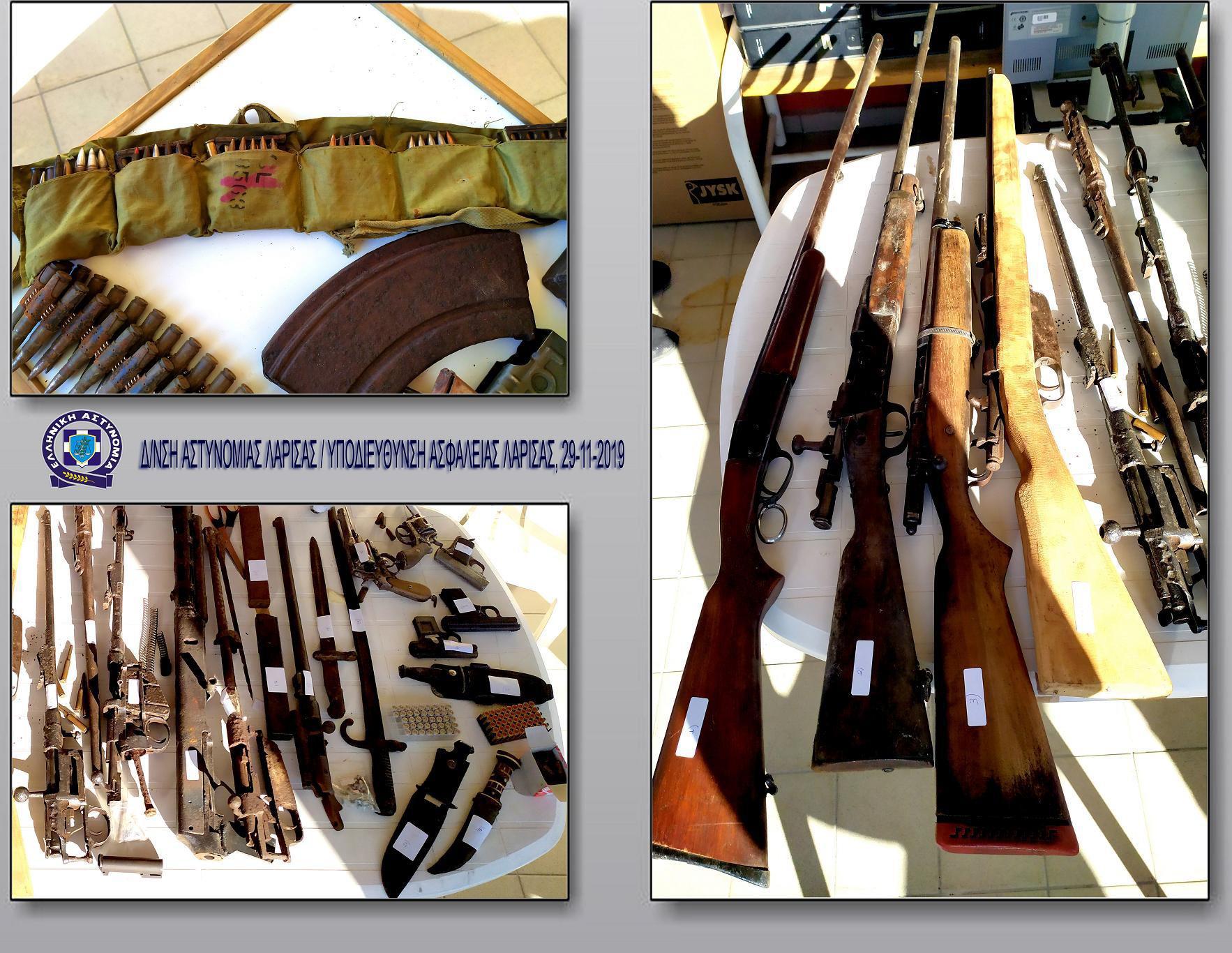 Κατασχέθηκαν, μεταξύ άλλων, πλήθος αρχαίων αντικειμένων, όπλων και φυσιγγίων