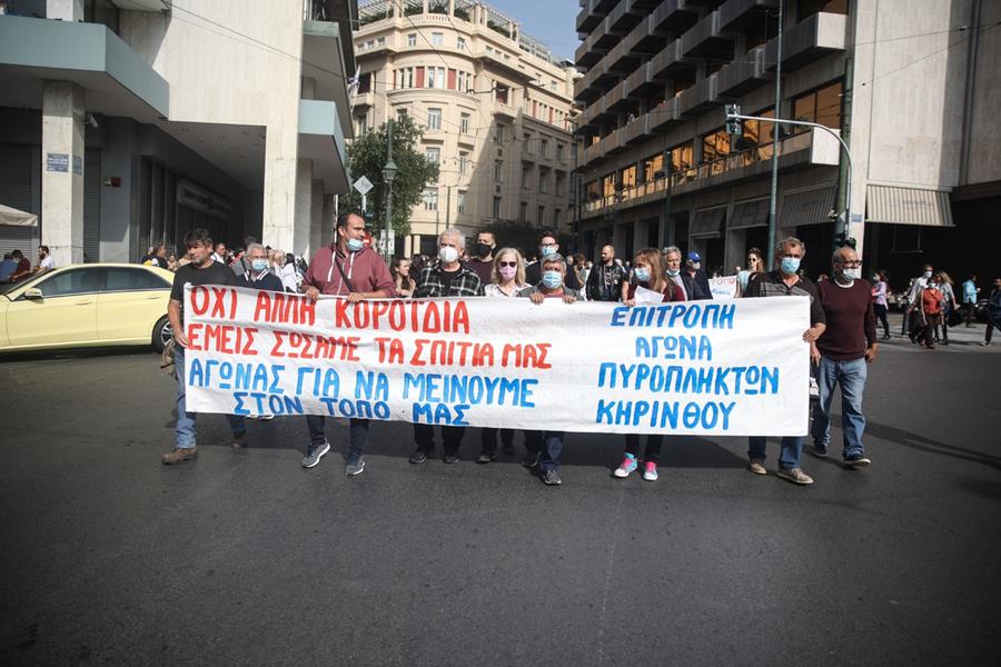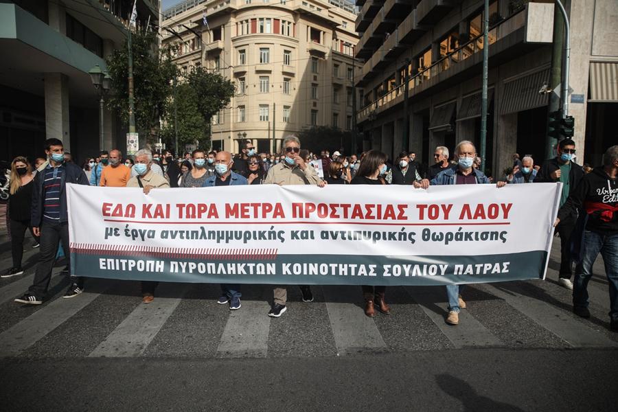 Πορεία προς στη Βουλή πραγματοποιούν αυτή την ώρα οι πληγέντες από φυσικές καταστροφές.