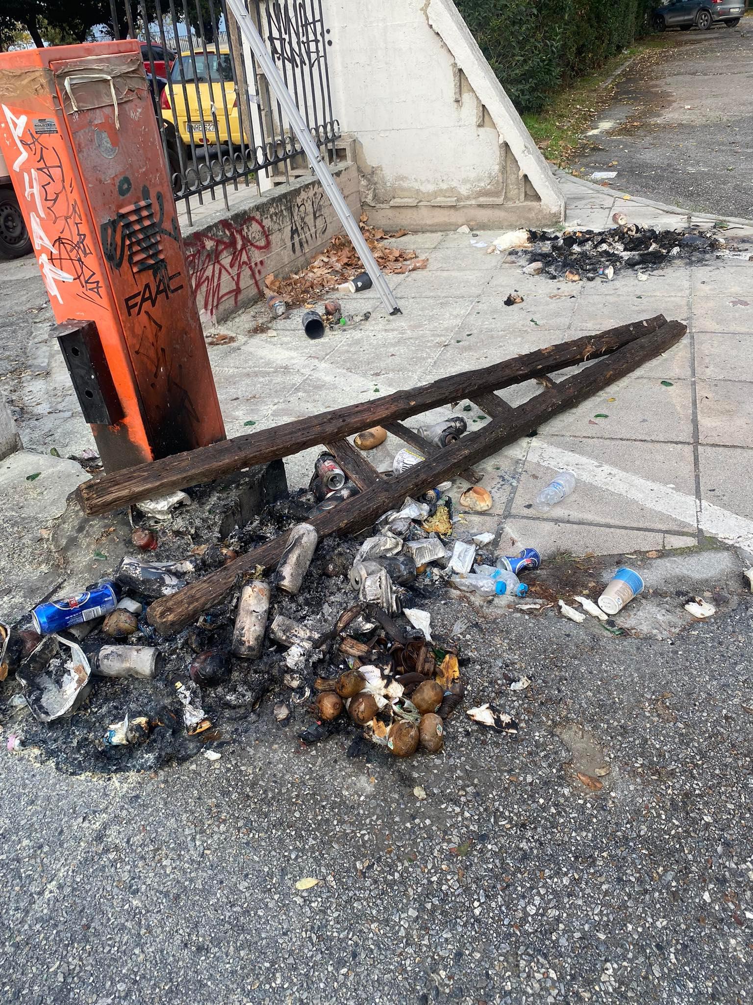 Βομβαρδισμένο τοπίο θυμίζει η Πολυτεχνική Σχολή του ΑΠΘ, μετά τα επεισόδια που εκτυλίχτηκαν μετά τη λήξη της πορείας για το Πολυτεχνείο.