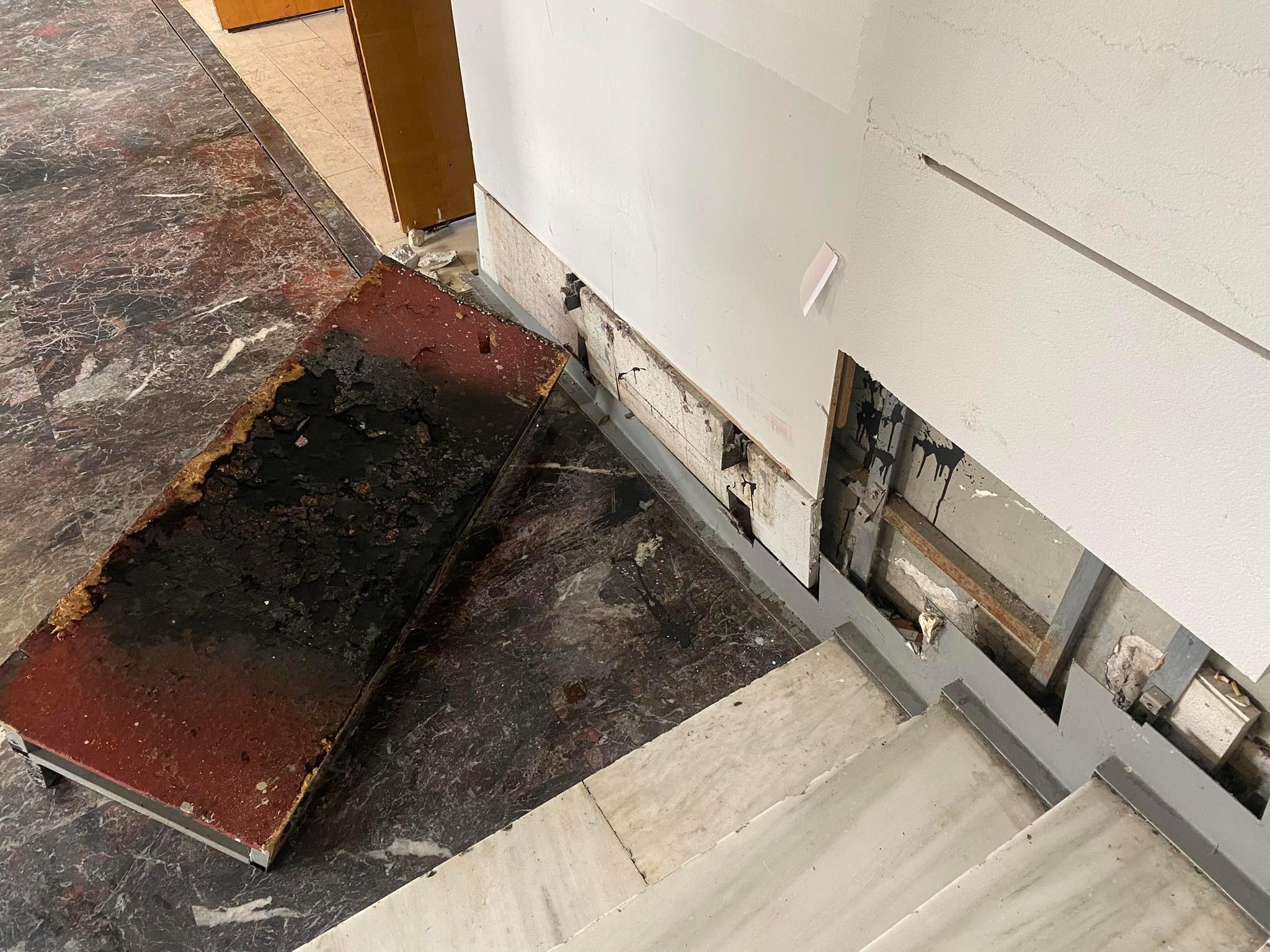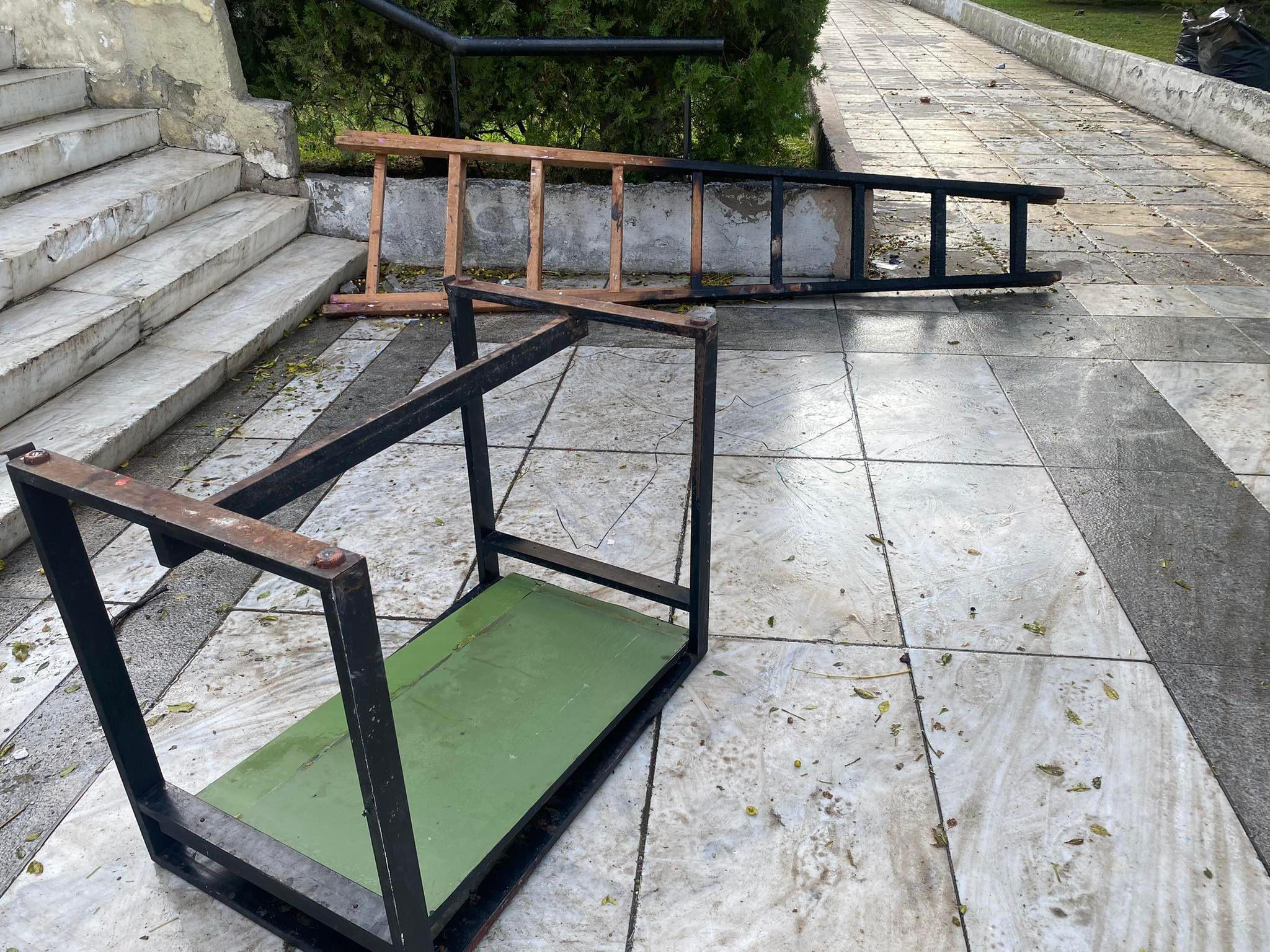 Συνεργεία του Πανεπιστημίου από το πρωί έχουν ξεκινήσει τον καθαρισμό του χώρου.