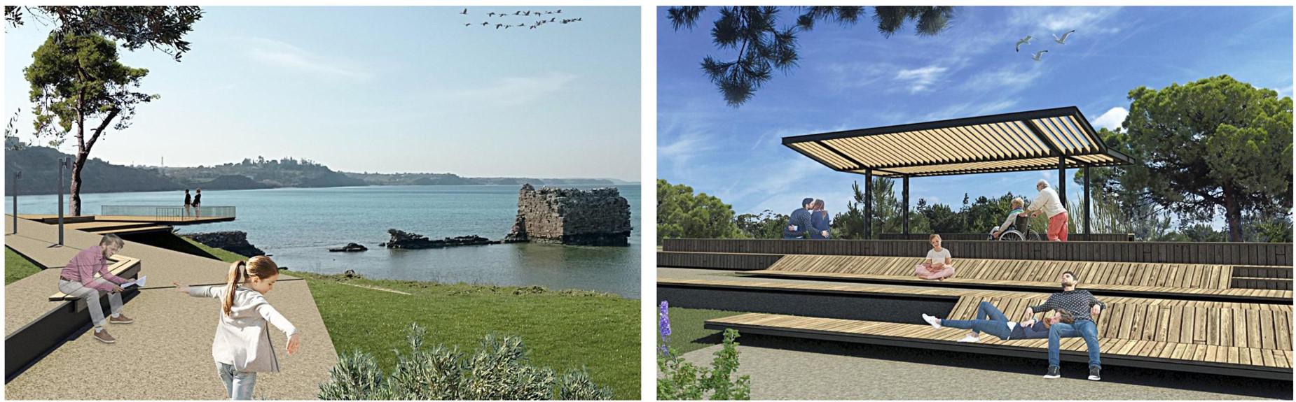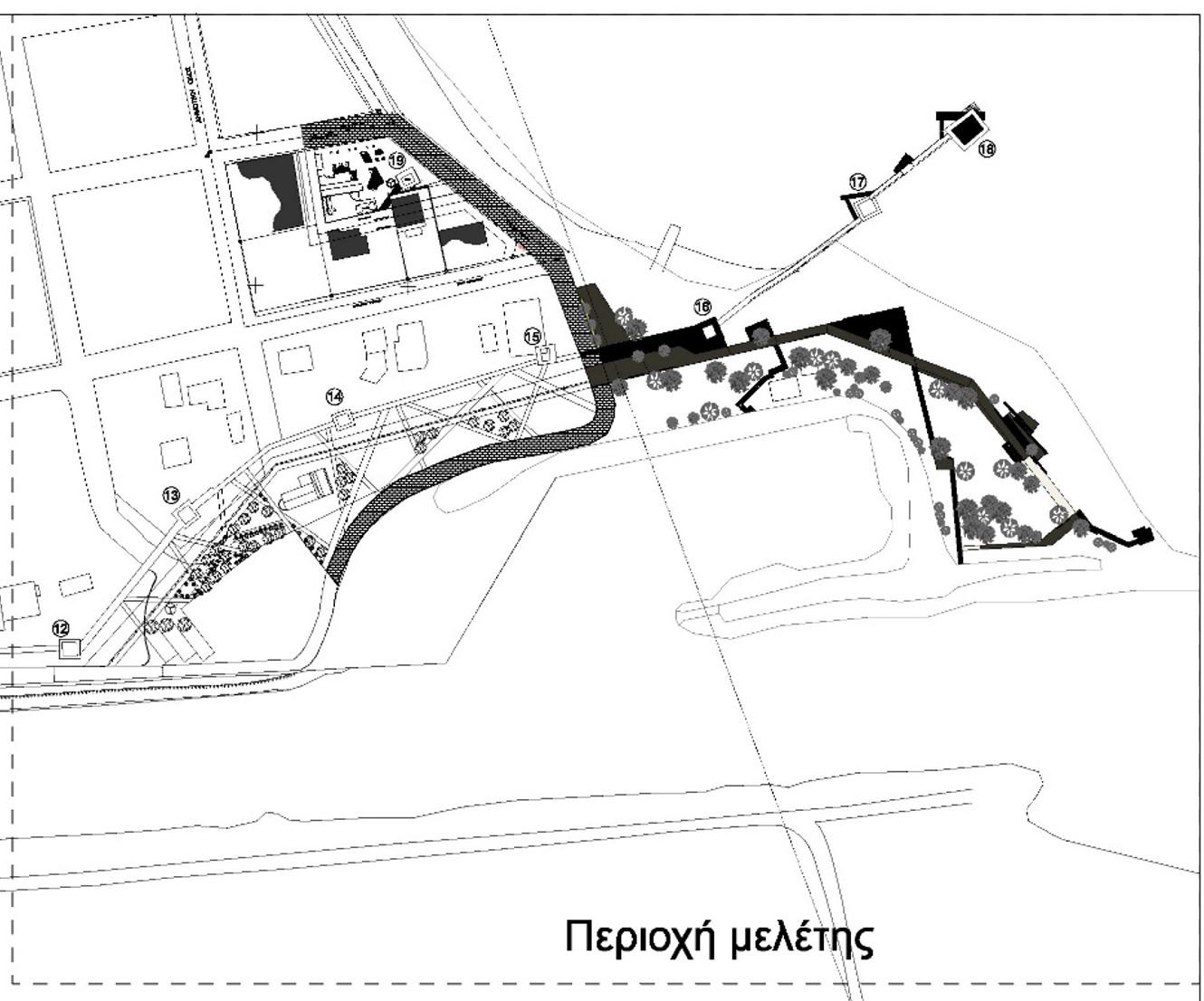 • Η πρώτη περιοχή που προτείνεται να διαμορφωθεί είναι το τμήμα από τον πύργο Π12 έως τον πύργο Π15, συνολικού μήκους περίπου 200μ. • Η δεύτερη περιοχή που προτείνεται να διαμορφωθεί είναι το τμήμα που περιβάλλει τον πύργο Π19. Η συνολική περιοχή παρέμβασης έχει επιφάνεια 650τ.μ περίπου. • Η τρίτη περιοχή που περιλαμβάνει η πρόταση είναι το τμήμα που στην υπάρχουσα κατάσταση υπάρχει μια πλατεία στο τμήμα γης ανάμεσα στο αλιευτικό καταφύγιο που βρίσκεται βόρεια του διατειχίσματος και στο δυτικό θαλάσσιο όριο της περιοχής, η οποία ενώ έχει άμεση οπτική επαφή με το θαλάσσιο τμήμα του διατειχίσματος (Π17-Π18).