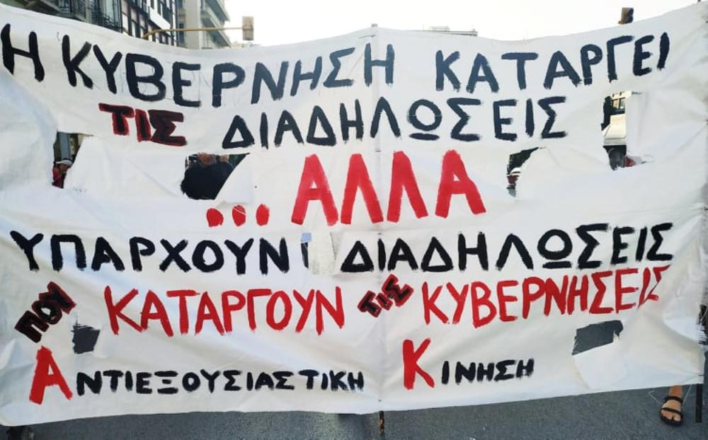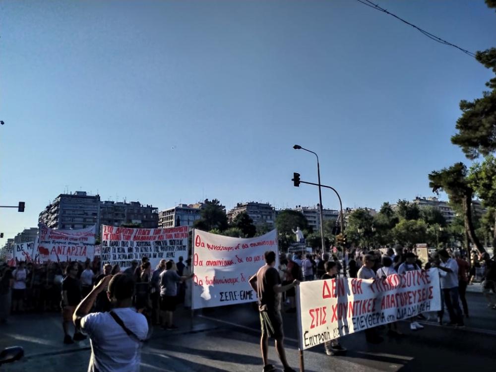Πορεία διαμαρτυρίας πραγματοποιείται αυτή την ώρα στο κέντρο της Θεσσαλονίκης με αφορμή το νομοσχέδιο για τις “Δημόσιες υπαίθριες συναθροίσεις” που ψηφίζεται σήμερα στην Βουλή.