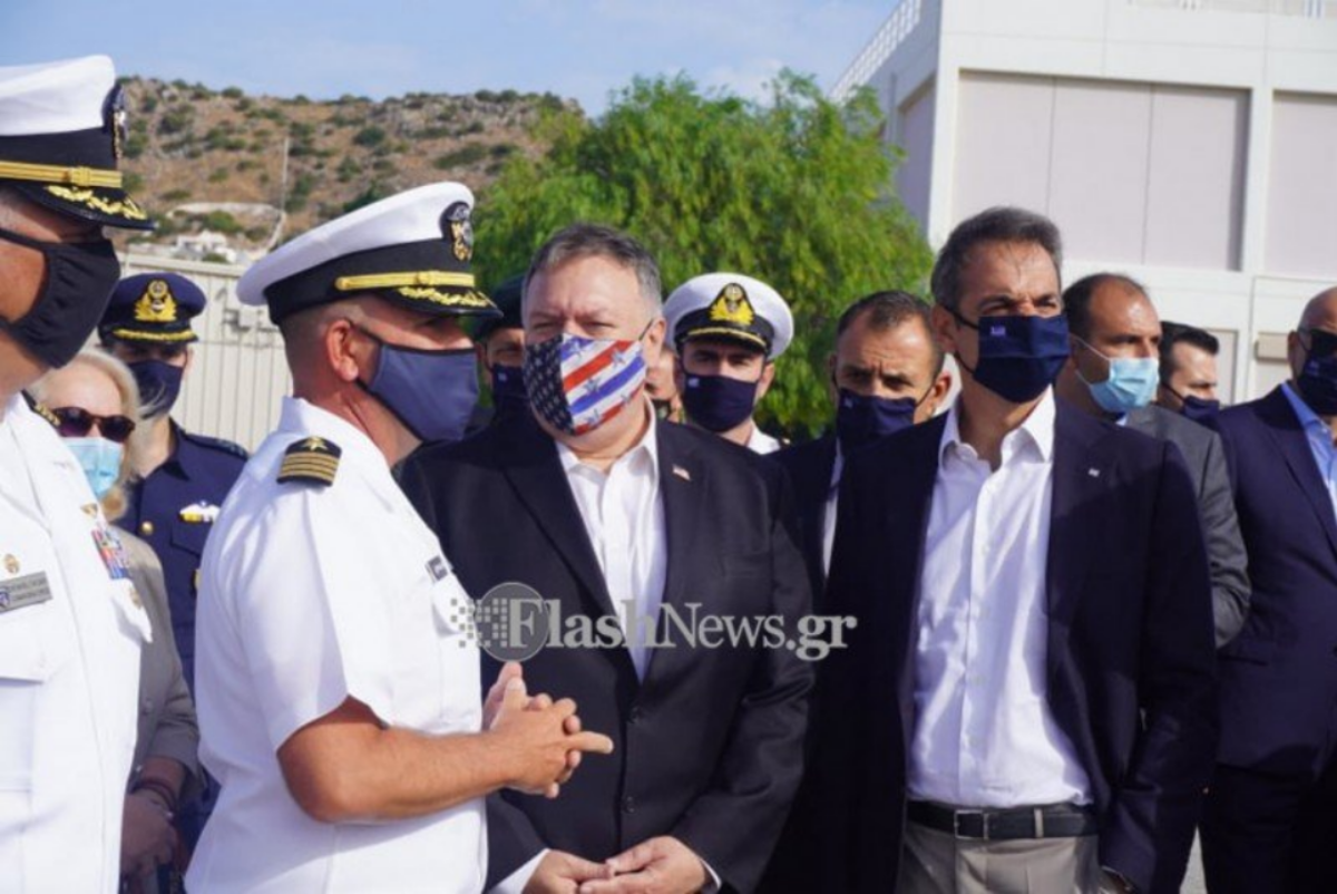 Σήμερα το πρωί ο Μάικ Πομπέο κάτω από δρακόντεια μέτρα ασφαλείας έφτασε στη ναυτική και αεροπορική βάση της Σούδας, μαζί με τον πρωθυπουργό.