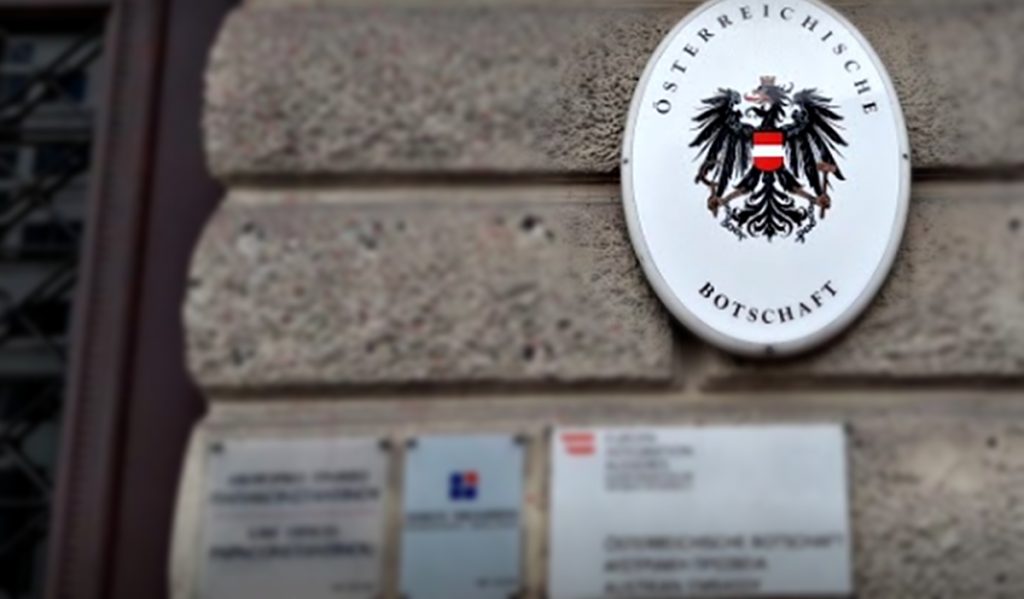 Μια ομάδα μελών του Ρουβίκωνα, γύρω στις 10.30, μπήκε στον κοινόχρηστο χώρο του κτιρίου της οδού Βασ. Σοφίας 4, στο ισόγειο του οποίου στεγάζεται η πρεσβεία και πέταξαν τρικάκια με συνθήματα κατά της απόφασης της Αυστριακής Βουλής.