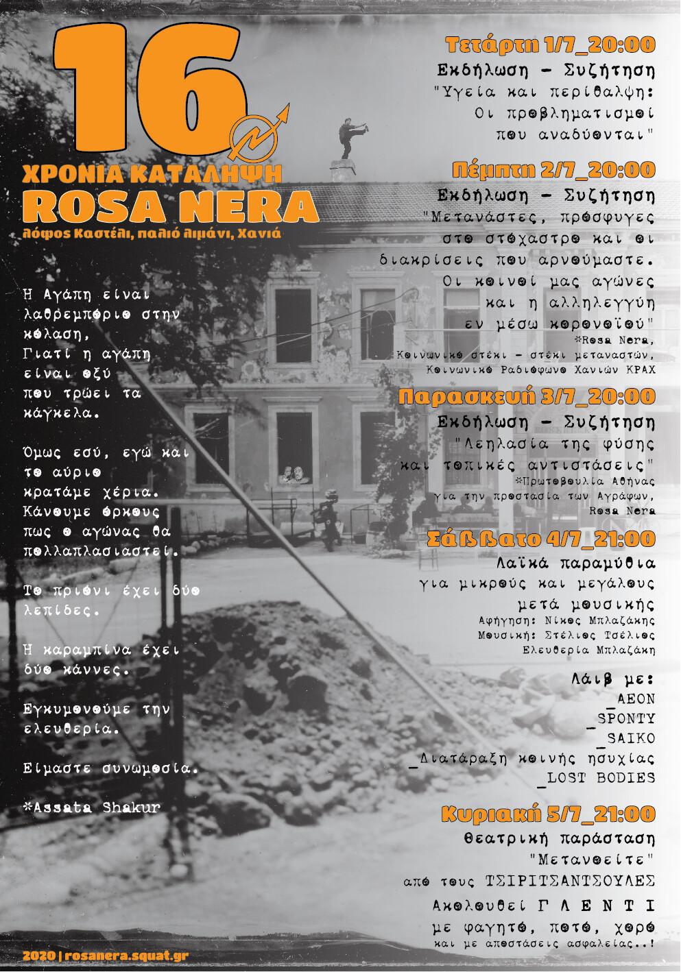 Με ανακοίνωση του το Κοινωνικό Στέκι- Στέκι Μεταναστών εκφράζει την αλληλεγγύη του στην Κατάληψη “Ρόζα Νέρα” και καλεί σε συγκέντρωση διαμαρτυρίας στις 12 το μεσημέρι στην πλατεία Δημοτικής Αγοράς.