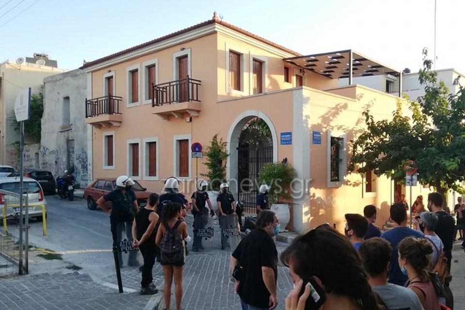 Μεταξύ των προσαχθέντων, οι οποίοι έχουν μεταφερθεί στην Αστυνομική Διεύθυνση Χανίων, βρίσκονται και μετανάστες οι οποίοι φιλοξενούνταν στο κτίριο.