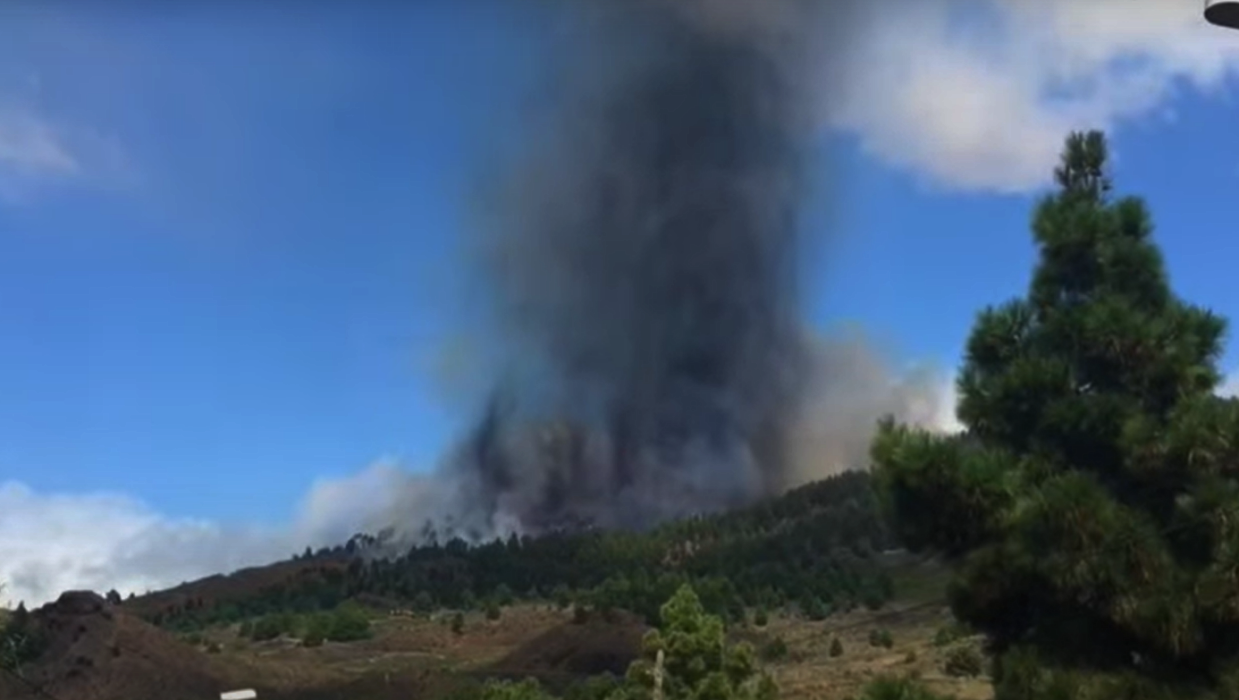 Στα πλάνα που μετέδωσε η ισπανική τηλεόραση, σιντριβάνια λάβας εκτοξεύονται στον ουρανό ενώ η στήλη του καπνού είναι ορατή από μεγάλη απόσταση, σε όλο το νησί.