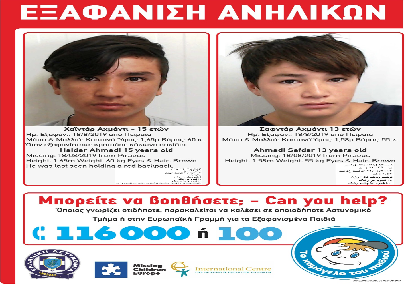Στις 18 Αυγούστου 2019, βραδινές ώρες, εξαφανίστηκαν από την περιοχή του Πειραιά, τα αδέρφια Χαϊντάρ και Σαφντάρ Αχμάντι, 15 και 13 ετών αντίστοιχα.