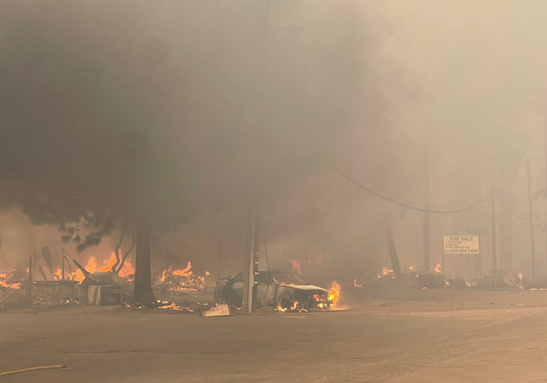 Η πυρκαγιά απειλεί σχεδόν 14.000 κτίσματα, δήλωσαν αξιωματούχοι και έχει ήδη καταστρέψει περισσότερα από 400, περιλαμβανομένου ουσιαστικά του συνόλου του κέντρου της Γκρίνβιλ, μιας παλιάς μεταλλευτικής πόλης περίπου 160 μίλια βόρεια του Σακραμέντο.