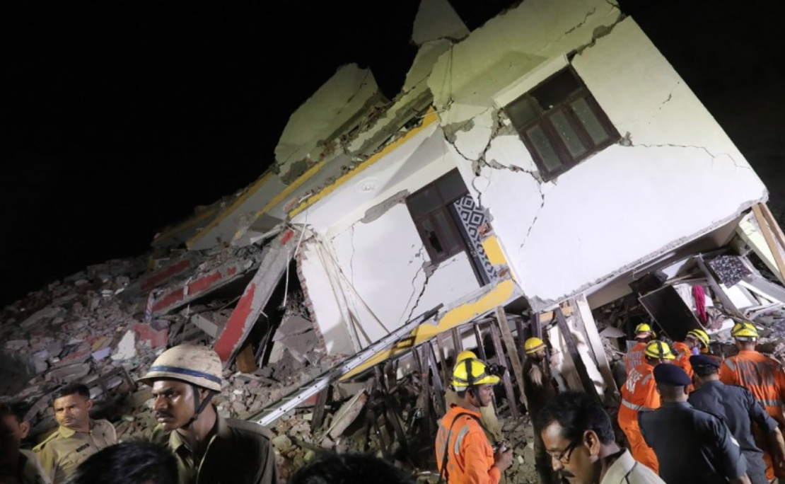 Στο κτίριο διέμεναν τουλάχιστον δέκα οικογένειες, σύμφωνα με το τηλεοπτικό δίκτυο India TV.