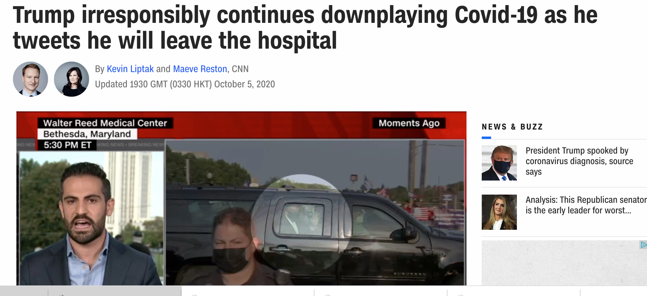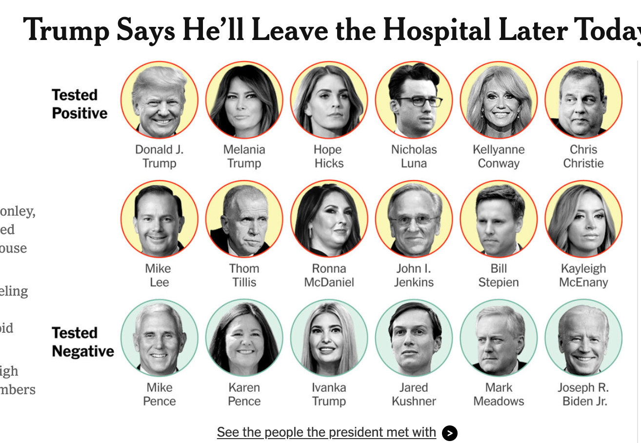 Λίγα λεπτά πριν από την προγραμματισμένη ενημέρωση Τύπου από τον γιατρό του Τραμπ, ο ίδιος ο Ρεπουμπλικάνος πρόεδρος με tweet του ανακοίνωσε ότι φεύγει από το νοσοκομείο, λέγοντας ότι νοιώθει «πολύ καλά».