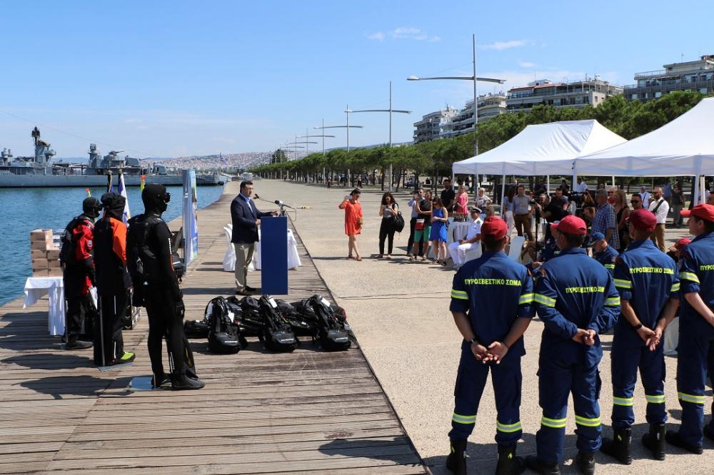 Εξοπλισμό για την αντιμετώπιση των πλημμυρών παρέδωσε σήμερα στη 2η ΕΜΑΚ του Πυροσβεστικού Σώματος ο Περιφερειάρχης Κεντρικής Μακεδονίας, Απόστολος Τζιτζικώστας. Ο εξοπλισμός περιλαμβάνει είδη ειδικής ένδυσης και υπόδησης των πυροσβεστών, αλλά και μια εξωλέμβια μηχανή, στολές κατάδυσης για διάσωση σε πλημμύρες, ρυθμιστές πλευστότητας δυτών, ατομικό προστατευτικό εξοπλισμό για δέκα διασώστες σε ορμητικά νερά, καθώς και ένα τρισδιάστατο σύστημα έρευνας βυθού.