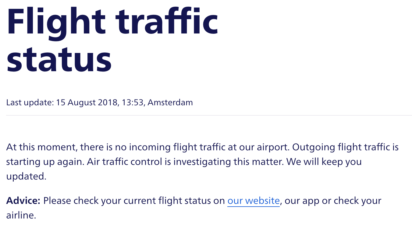 Το site του αεροδρομίου εμφανίζει την παρακάτω ένδειξη: