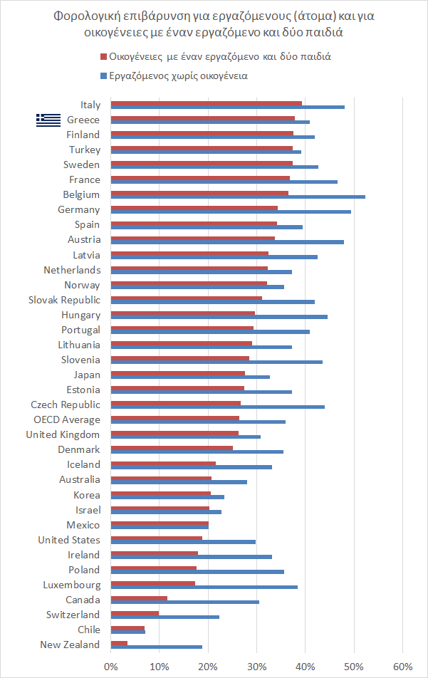 Η Ελλάδα στη 2η υψηλότερη φορολόγηση εργαζομένων με παιδιά