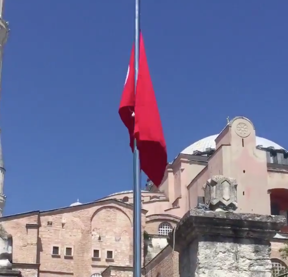 Poles were built in Hagia Sophia’s entrance and Turkish flags are flying there as of yesterday pic.twitter.com/Exkeeunfst