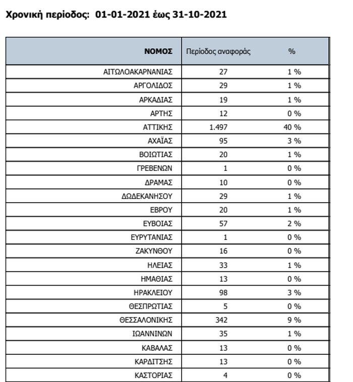 Από τα στατιστικά στοιχεία προκύπτει ότι αρνητική “πρωταθλήτρια” είναι η Αττική, με ποσοστό αναλογίας στις 5.000 το 40% και αριθμητικά 1.497.