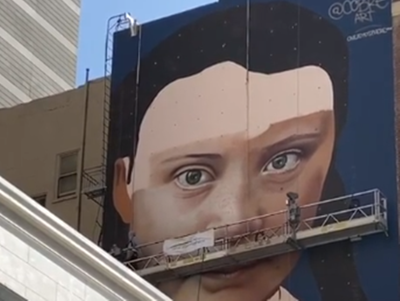 Ένα επιβλητικό mural με την Γκρέτα Τούνμπεργκ δημιουργείται στο Σαν Φρανσίσκο, μια πόλη γνωστή για την οικολογική της συνείδηση.
