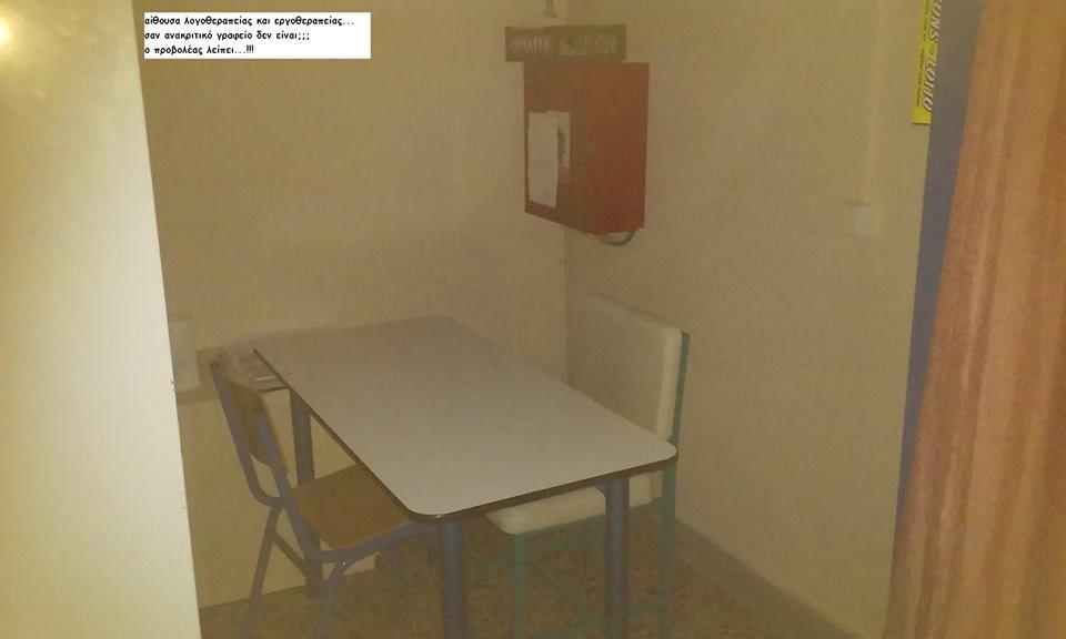 Ανύπαρκτες αίθουσες εργοθεραπείας, λογοθεραπείας και φυσιοθεραπείας.