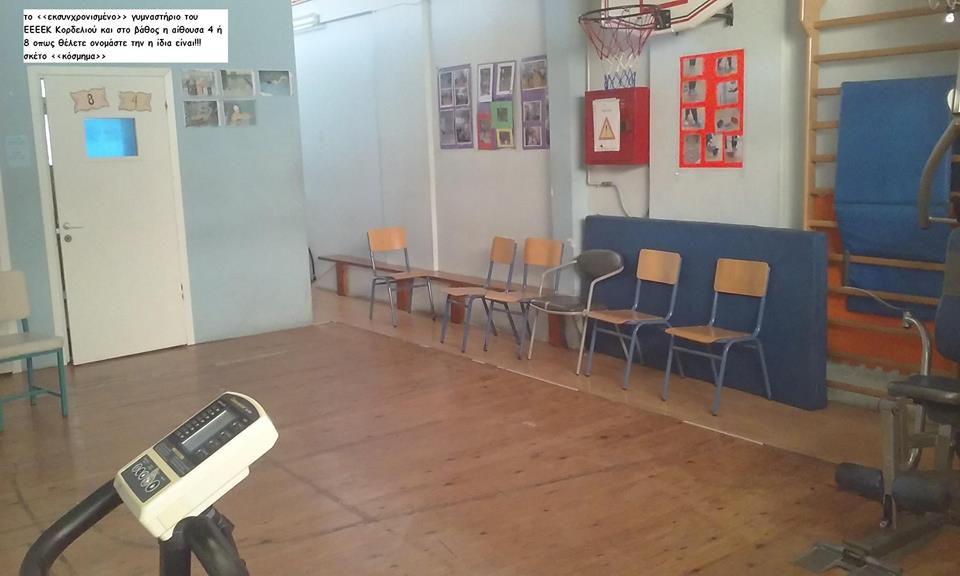 Σχολείο χωρίς πιστοποίηση πυρασφαλείας και σεισμικού κινδύνου, χώρος που νοικιάζεται από τον Δήμο Κορδελιού, στενοί διάδρομοι που οδηγούν σε 4 τάξεις «κλουβιά» όπου πρέπει να χωρέσουν μέσα οι μαθητές και οι εκπαιδευτικοί. Γυμναστήριο χωρίς τα κατάλληλα όργανα γι’ αυτά τα παιδιά και χωρίς τα απαραίτητα τετραγωνικά μέτρα.