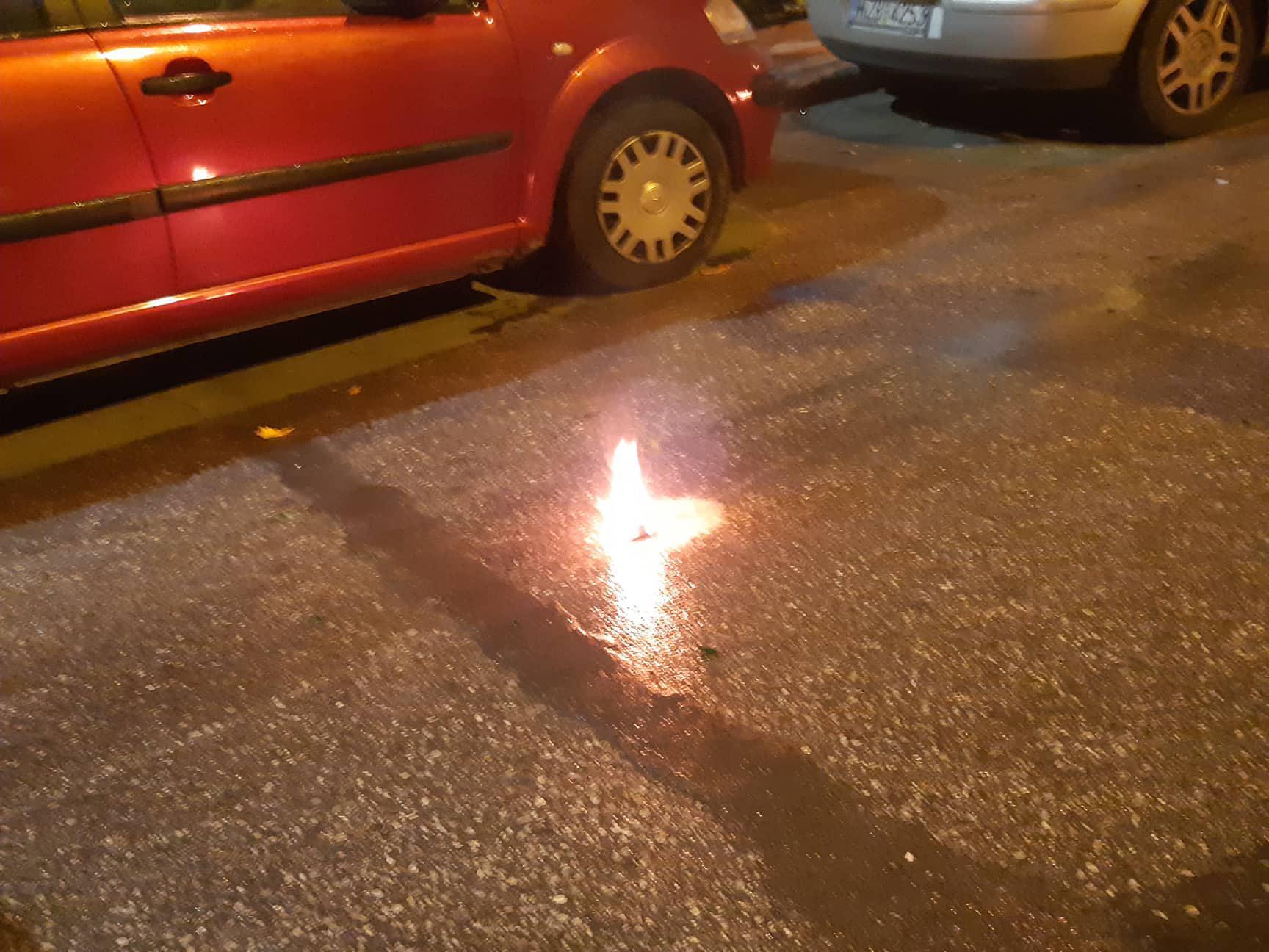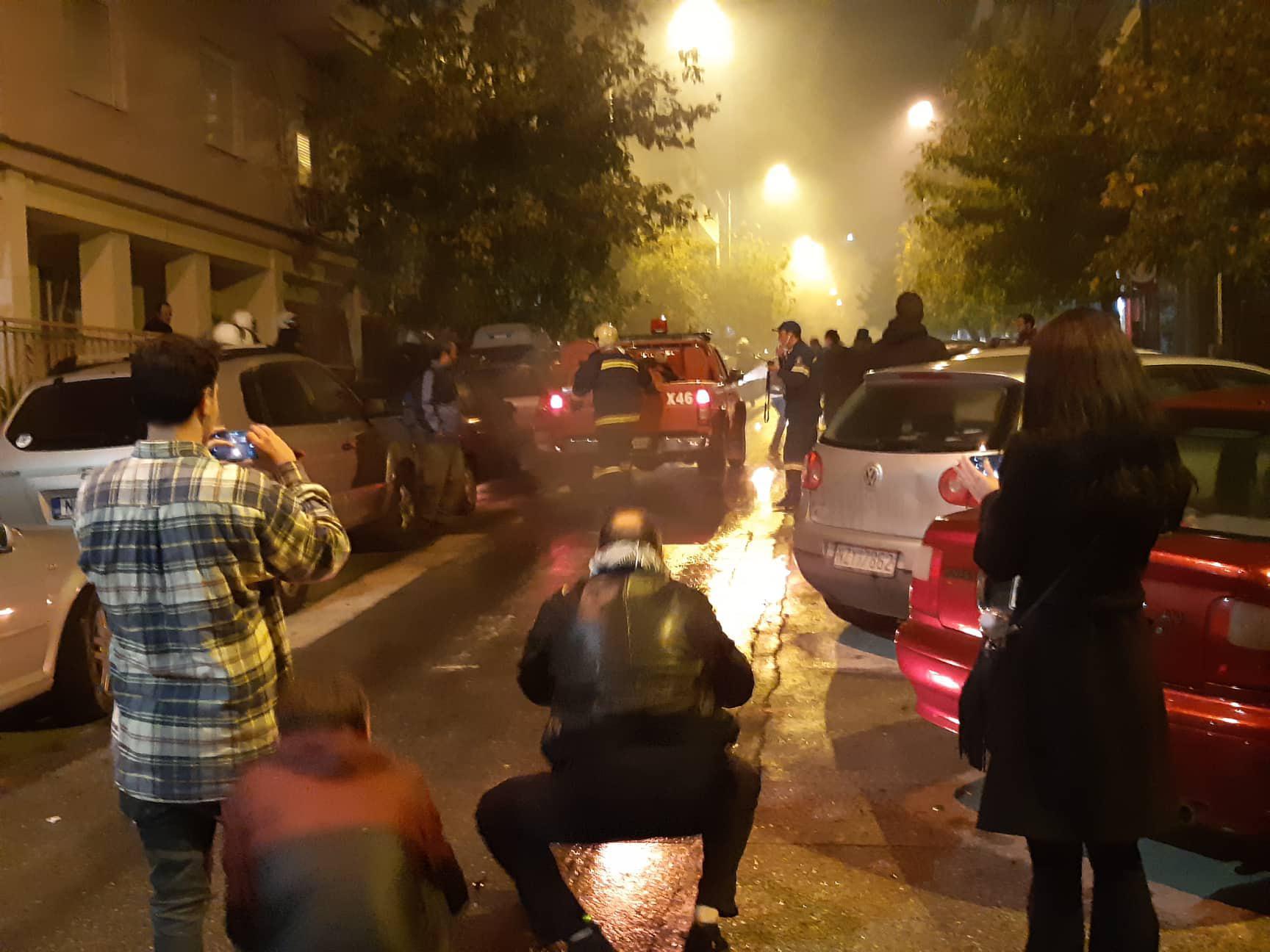Οι δυναμεις των ΜΑΤ με την πυροσβεστική είναι στο σημείο. Η παρέμβαση της Πυροσβεστικής ήταν άμεση και σβήστηκε η φωτιά, όπως βοήθησαν και οι κάτοικοι που πετούσαν νερό από τα μπαλκόνια τους.