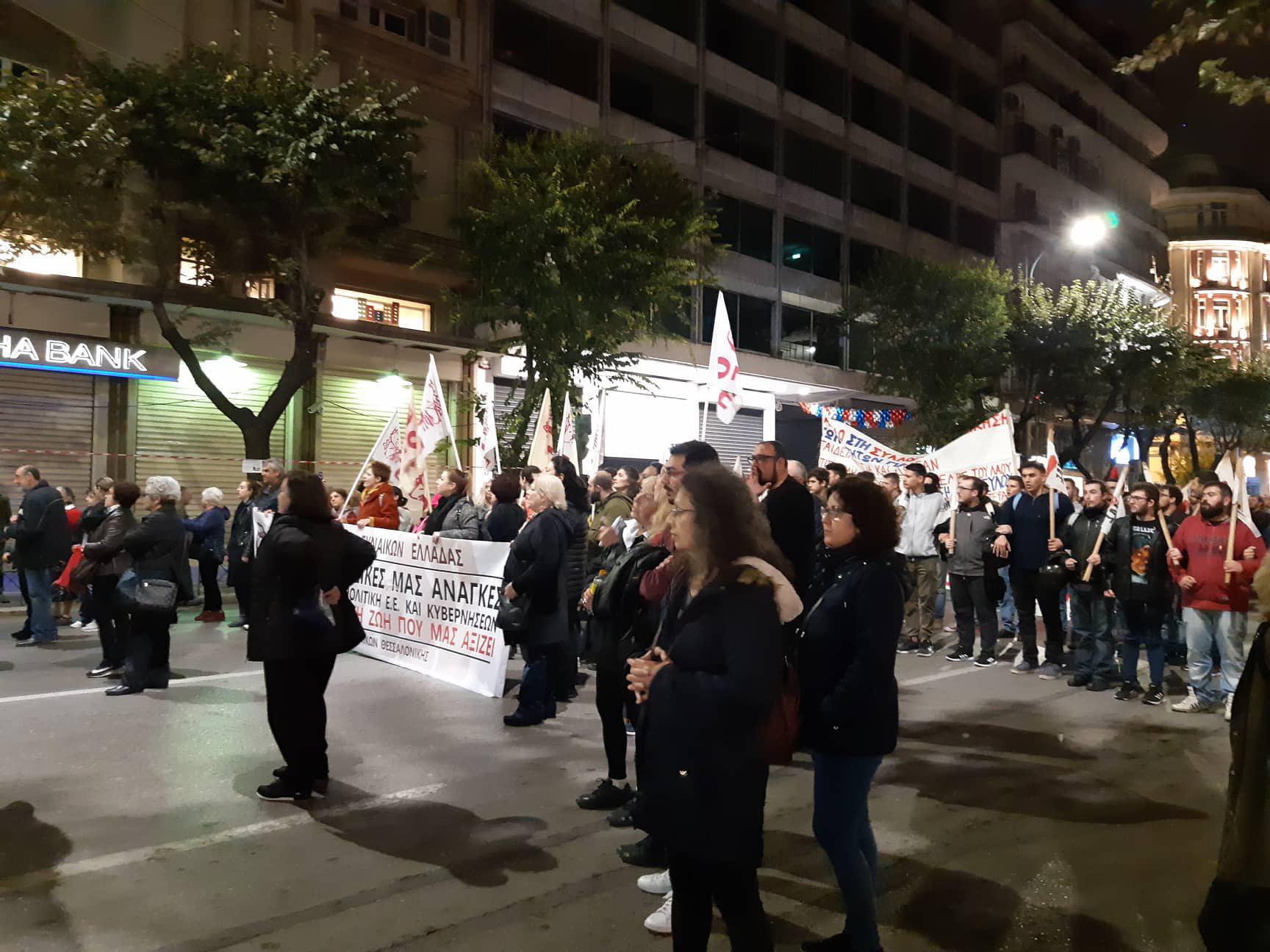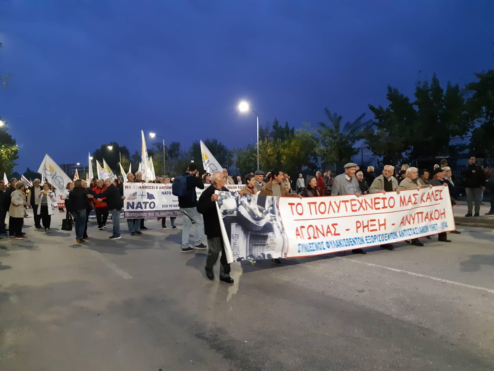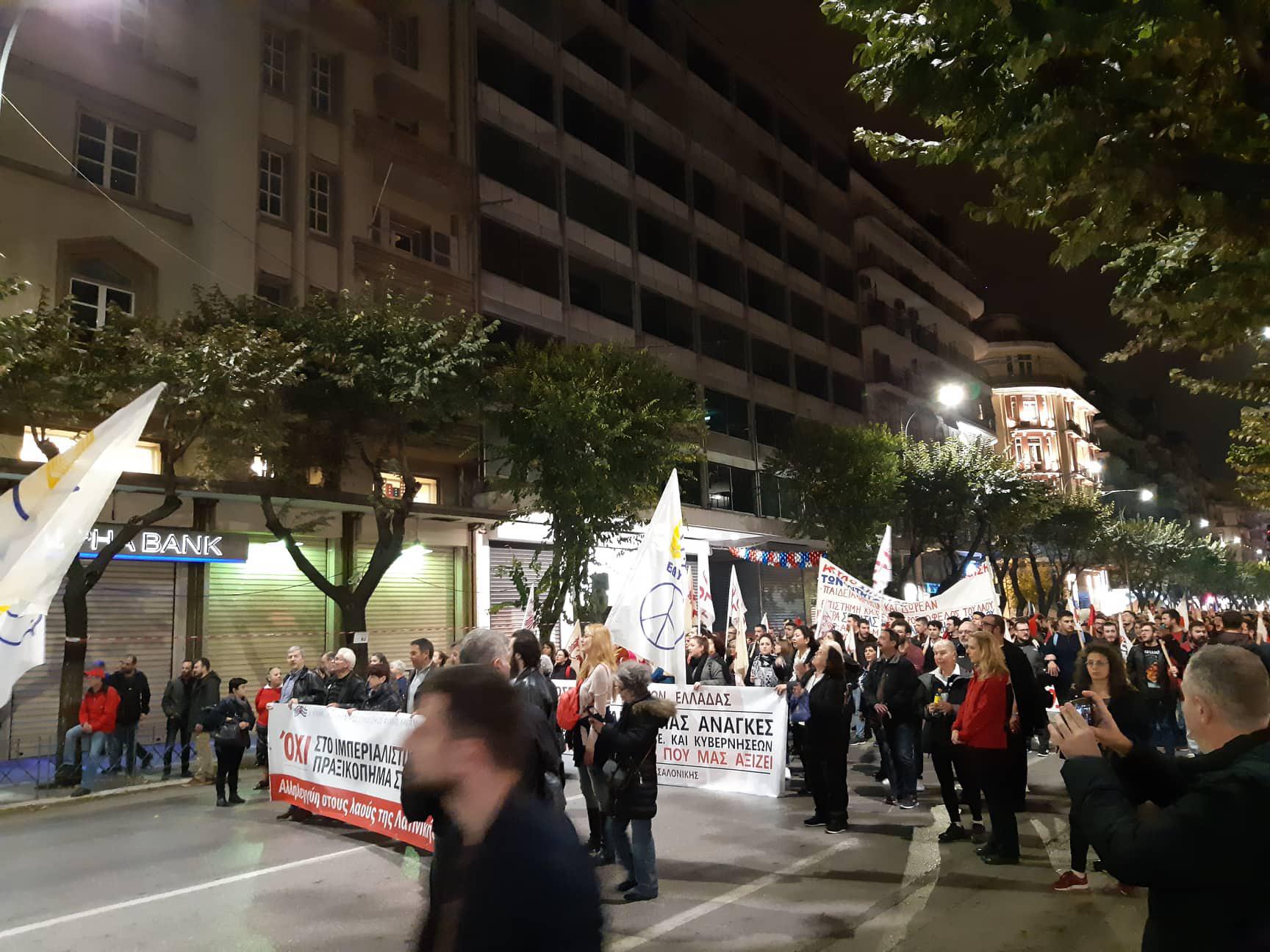 Ξεκίνησε το πρώτο μπλοκ της πορείας από το Πολυτεχνείο του ΑΠΘ που κατευθυνθεί από την Εγνατία, μέσω της Εθνικής Αμύνης στην Τσιμισκή και θα σταματήσουν μπροστά στο Αμερικανικό Προξενείο. Έπειτα θα κατευθυνούν στην Αριστοτέλους. Αυτή η πρώτη πορεία αποτελείται από Φυλακισμένους, εξορισθέντες και μέλη του ΠΑΜΕ.
