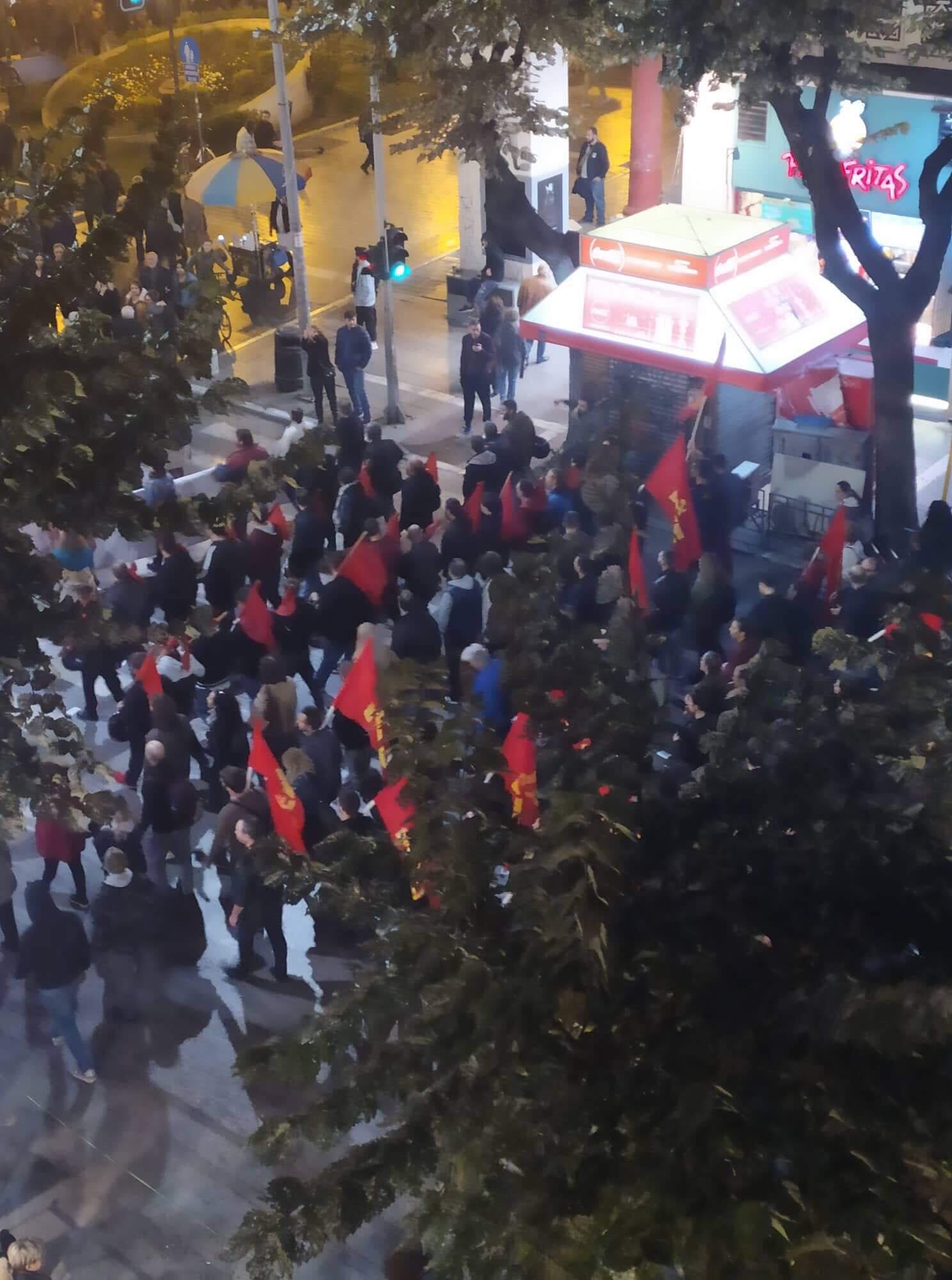Στις 17:50 η πορεία μπήκε στην Τσιμισκή με σύνθημα “Χρυσαυγίτες σας ταϊζουν εφοπλιστές”