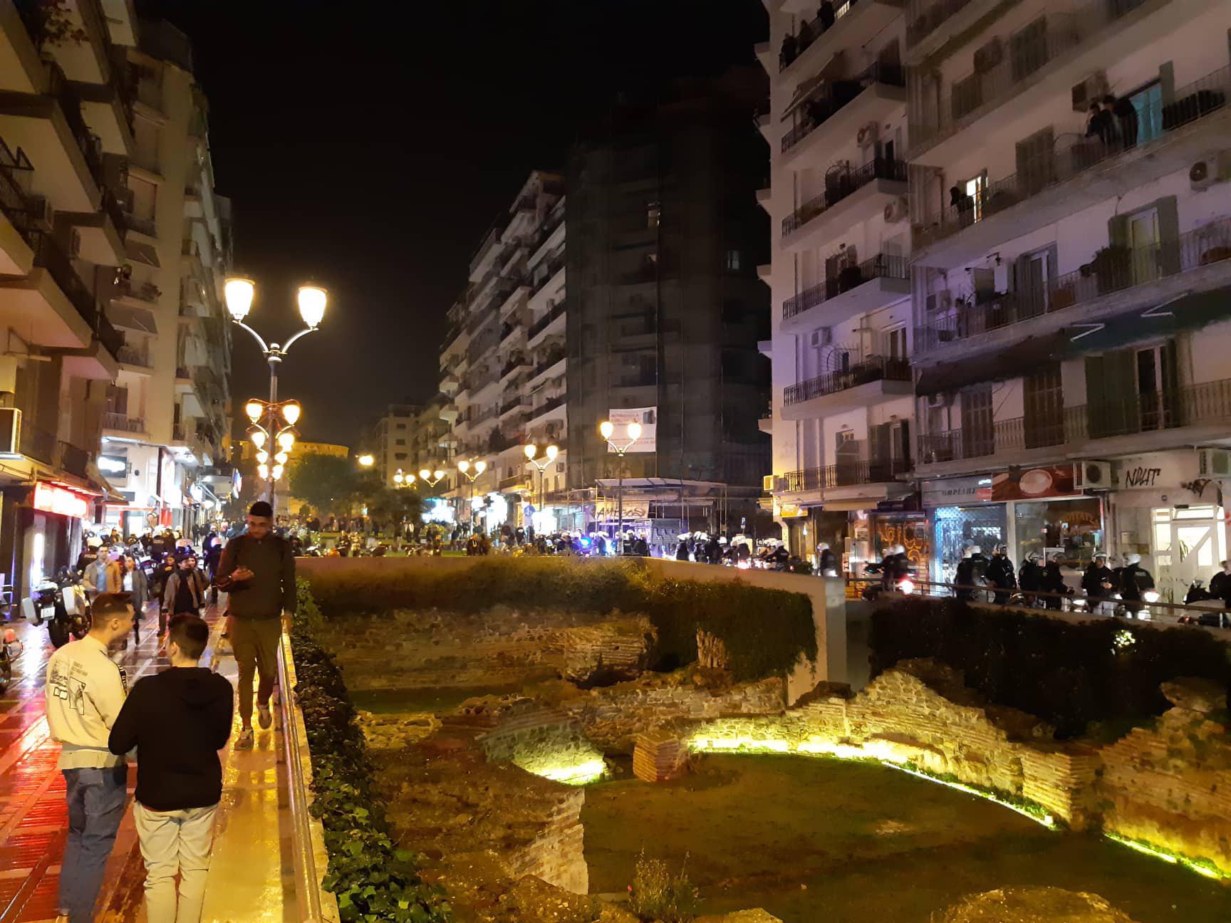 Οι αστυνομικοί είναι στη Γούναρη και οι αντεξουσιαστές βρίσκονται ψηλά στον πεζόδρομο.