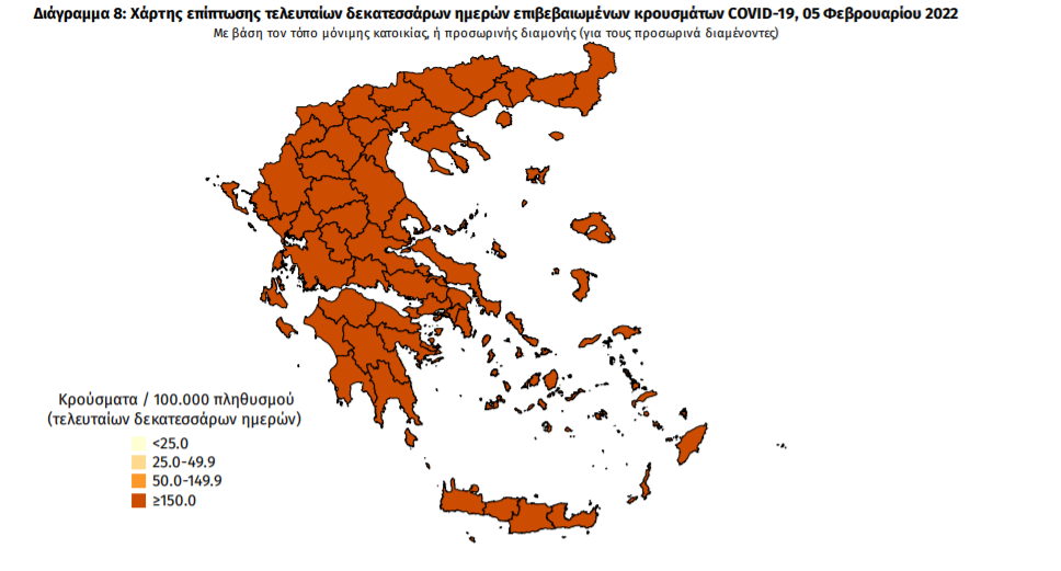 Τα νέα εργαστηριακά επιβεβαιωμένα κρούσματα της νόσου που καταγράφηκαν τις τελευταίες 24 ώρες είναι 16.023 , εκ των οποίων 48 εντοπίστηκαν κατόπιν ελέγχων στις πύλες εισόδου της χώρας. Ο συνολικός αριθμός των κρουσμάτων ανέρχεται σε 2.036.869 (ημερήσια μεταβολή +0.8%), εκ των οποίων 49.8% άνδρες. Με βάση τα επιβεβαιωμένα κρούσματα των τελευταίων 7 ημερών, 388 θεωρούνται σχετιζόμενα με ταξίδι από το εξωτερικό και 2.728 είναι σχετιζόμενα με ήδη γνωστό κρούσμα.