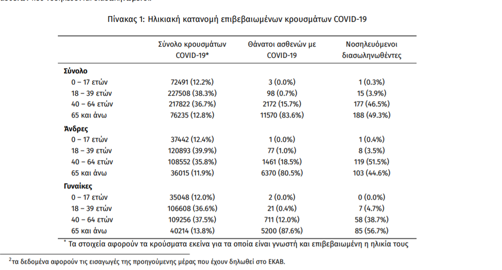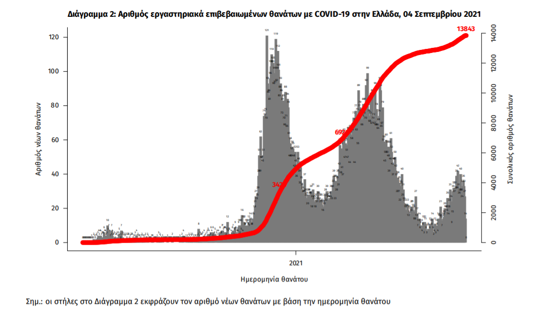 Οι νέοι θάνατοι ασθενών με COVID-19 είναι 30, ενώ από την έναρξη της επιδημίας έχουν καταγραφεί συνολικά 13.843 θάνατοι. Το 95.3% είχε υποκείμενο νόσημα ή/και ηλικία 70 ετών και άνω