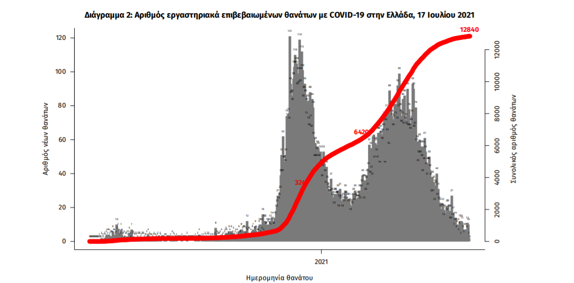 Οι νέοι θάνατοι ασθενών με COVID-19 είναι 7, ενώ από την έναρξη της επιδημίας έχουν καταγραφεί συνολικά 12.840 θάνατοι. Το 95.1% είχε υποκείμενο νόσημα ή/και ηλικία 70 ετών και άνω.