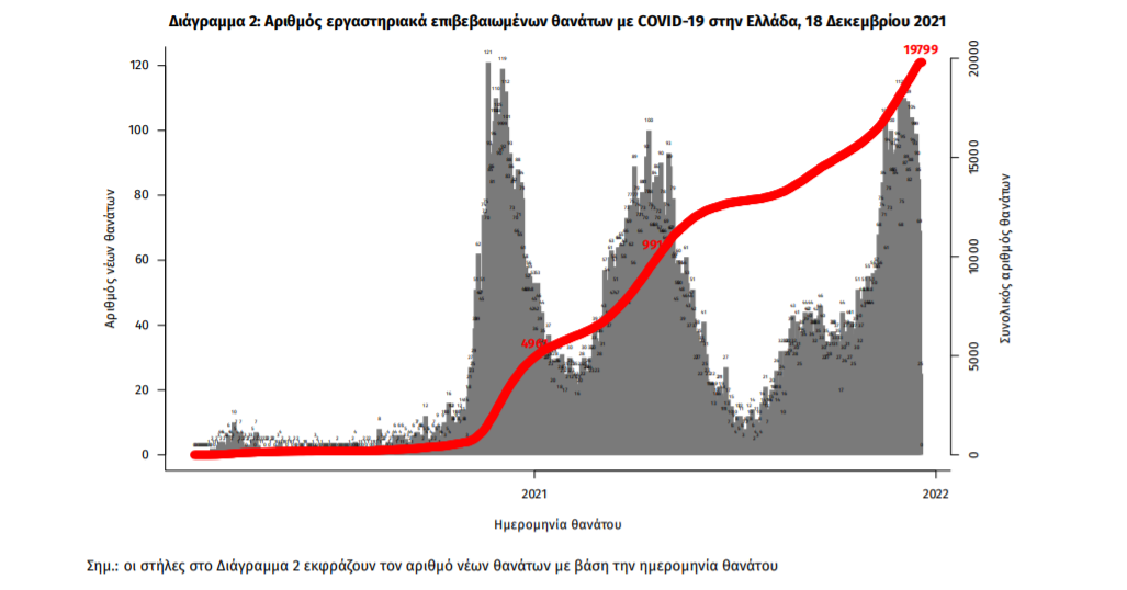 Οι νέοι θάνατοι ασθενών με COVID-19 είναι 63, ενώ από την έναρξη της επιδημίας έχουν καταγραφεί συνολικά 19.799 θάνατοι. Το 95.3% είχε υποκείμενο νόσημα ή/και ηλικία 70 ετών και άνω.