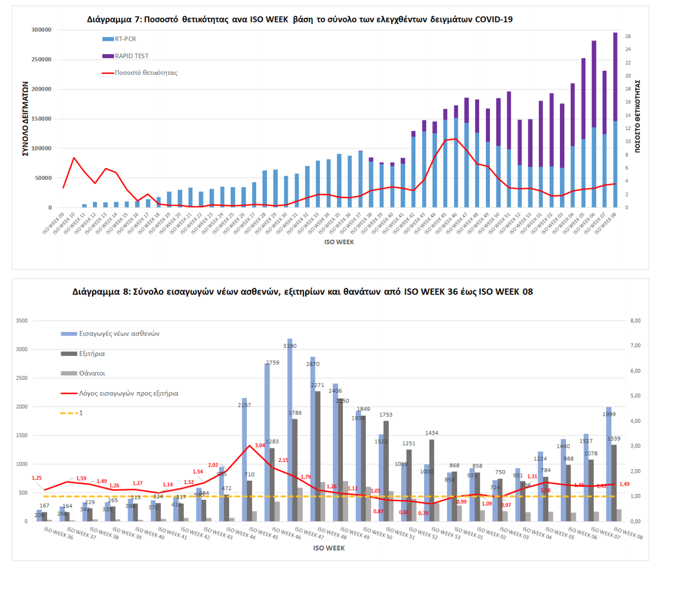 ISO WEEK Την εβδομάδα 22 – 28 Φεβρουαρίου (Iso Week 08) το ποσοστό θετικότητας ήταν 3.89% σε σύνολο 146.594 RT-PCR και 149.076 Rapid Ag τεστ που πραγματοποιήθηκαν.