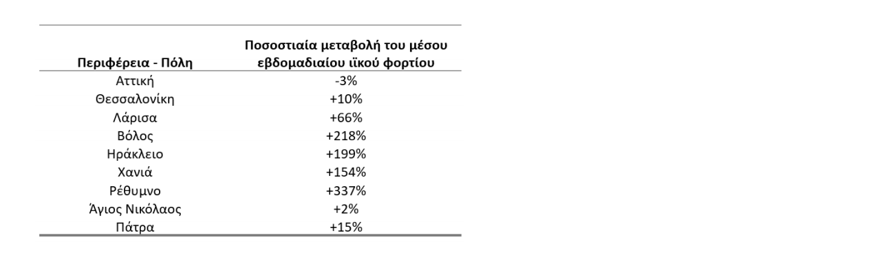 Παράρτημα 2: ΕΘΝΙΚΟ ΔΙΚΤΥΟ ΕΠΙΔΗΜΙΟΛΟΓΙΑΣ ΛΥΜΑΤΩΝ ΕΟΔΥ Ανακοινώνονται τα αποτελέσματα των εργαστηριακών ελέγχων του Εθνικού Δικτύου Επιδημιολογίας Λυμάτων το οποίο λειτουργεί υπό τον συντονισμό του ΕΟΔΥ για την επιδημιολογική επιτήρηση του ιού SARS-CoV-2 σε αστικά λύματα που αφορούν την περίοδο από 22 έως 28 Φεβρουαρίου 2021. Τα δείγματα προέρχονται από την Περιφέρεια Αττικής και τις πόλεις της Θεσσαλονίκης, της Λάρισας, του Βόλου, του Ηρακλείου, των Χανίων, του Ρεθύμνου, του Αγίου Νικολάου και της Πάτρας. Τα δείγματα λαμβάνονται από τις εισόδους των εκάστοτε Μονάδων Επεξεργασίας Λυμάτων και αντιστοιχούν στον πληθυσμό που εξυπηρετείται από αυτές. Πίνακας 1: Ποσοστιαία μεταβολή στη μέση εβδομαδιαία συγκέντρωση του ιϊκού φορτίου του SARS-CoV-2 στα αστικά λύματα ανά 100.000 κατοίκους την εβδομάδα 22-28 Φεβρουαρίου 2021 σε σχέση με την εβδομάδα 15-21 Φεβρουαρίου 2021.