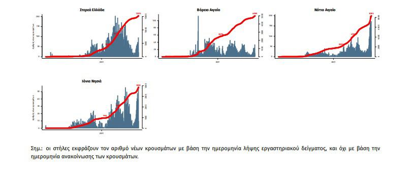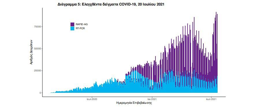 Δείγματα που έχουν ελεγχθεί: Από την 1η Ιανουαρίου 2020 μέχρι σήμερα, στα εργαστήρια που διενεργούν ελέγχους για τον νέο κορωνοϊό (SARS-CoV-2) και που δηλώνουν συστηματικά το σύνολο των δειγμάτων που ελέγχουν, έχουν συνολικά ελεγχθεί 5.659.771 κλινικά δείγματα ενώ από Μονάδες Υγείας και Κλιμάκια του ΕΟΔΥ που διενεργούν ελέγχους Rapid Ag έχουν ελεγχθεί 6.176.929 δείγματα. O μέσος όρος του επταημέρου είναι 73.860 δειγματοληπτικοί έλεγχοι.
