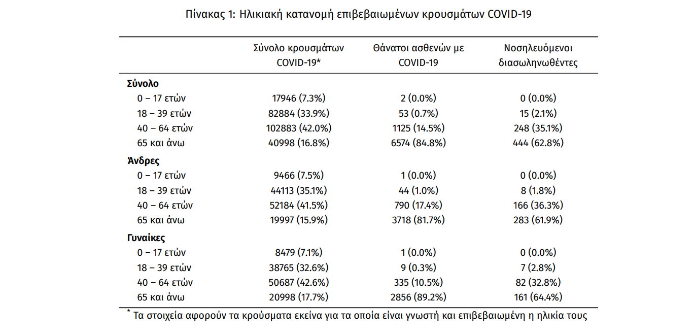 Οι νέοι θάνατοι ασθενών με COVID-19 είναι 53, ενώ από την έναρξη της επιδημίας έχουν καταγραφεί συνολικά 7.754 θάνατοι. Το 95.7% είχε υποκείμενο νόσημα ή/και ηλικία 70 ετών και άνω.