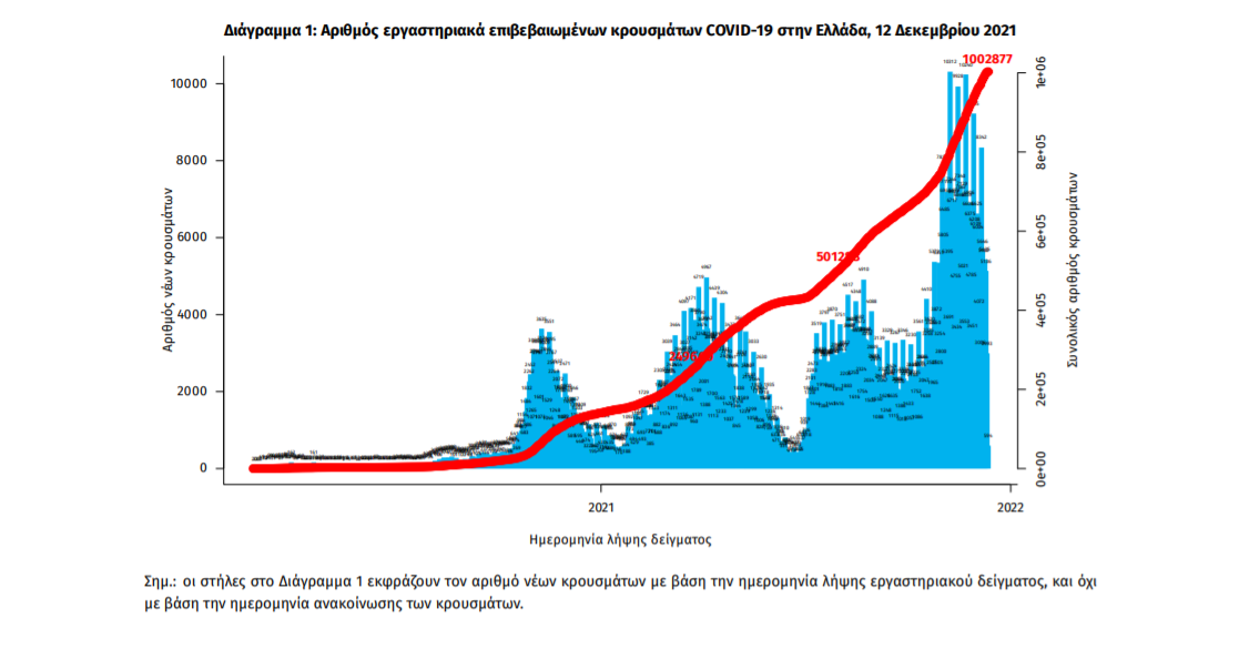 Αύξηση των θανάτων- Ξεπέρασαν το 1.000.000 τα κρούσματα στην Ελλάδα.