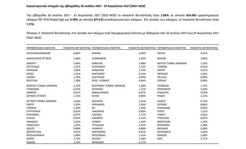 ΕΟΔΥ: Πάνω από 2.800 νέα κρούσματα – 192 διασωληνωμένοι