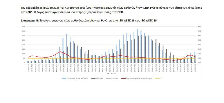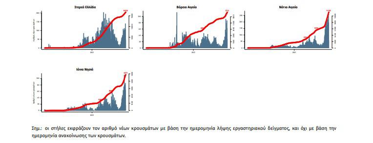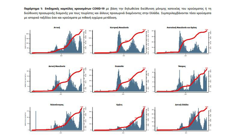 Με βάση τα επιβεβαιωμένα κρούσματα των τελευταίων 7 ημερών, 159 θεωρούνται σχετιζόμενα με ταξίδι από το εξωτερικό και 1.646 είναι σχετιζόμενα με ήδη γνωστό κρούσμα. To για την επικράτεια βάσει των κρουσμάτων εκτιμάται σε 1.05 (95% Crl: 0.98 – 1.10).