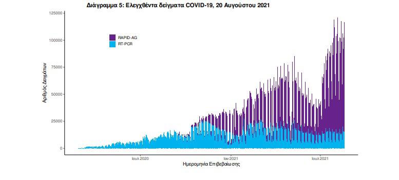 Δείγματα που έχουν ελεγχθεί: Από την 1η Ιανουαρίου 2020 μέχρι σήμερα, στα εργαστήρια που διενεργούν ελέγχους για τον νέο κορωνοϊό (SARS-CoV-2) και που δηλώνουν συστηματικά το σύνολο των δειγμάτων που ελέγχουν, έχουν συνολικά ελεγχθεί 6.062.781 κλινικά δείγματα ενώ από Μονάδες Υγείας και Κλιμάκια του ΕΟΔΥ που διενεργούν ελέγχους Rapid Ag έχουν ελεγχθεί 8.505.830 δείγματα. O μέσος όρος του επταημέρου είναι 87.627 δειγματοληπτικοί έλεγχοι.