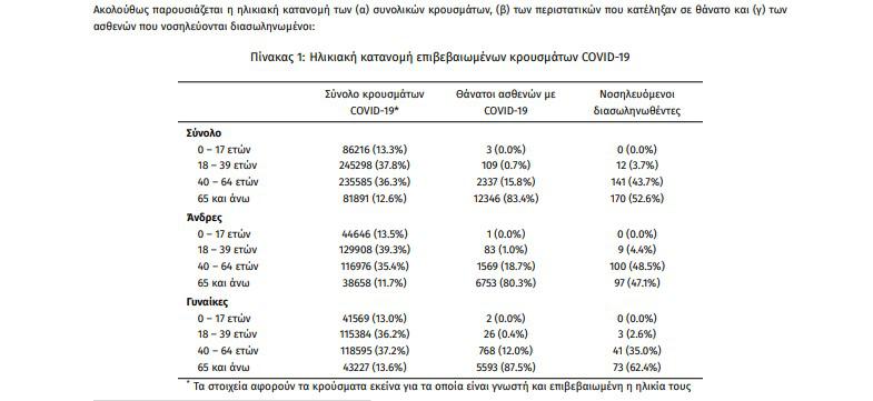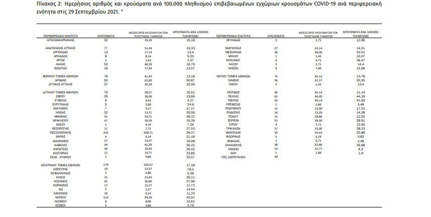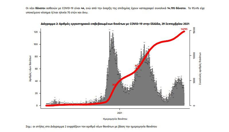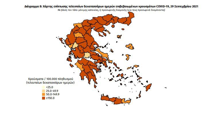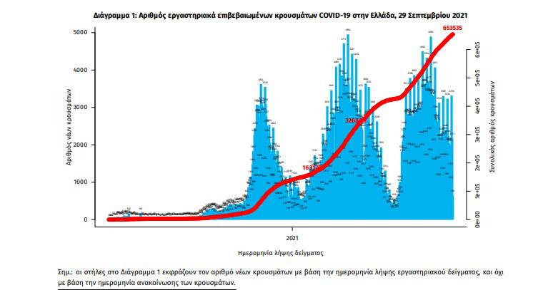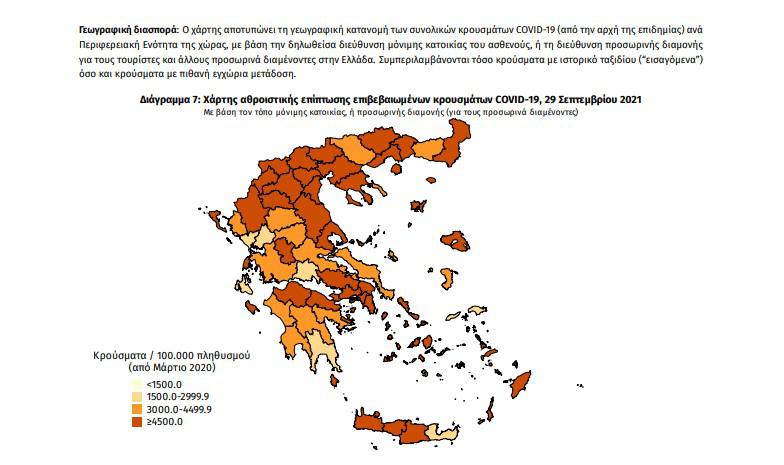 Τα στοιχεία που παρουσιάζονται αφορούν περιστατικά από την επιδημιολογική επιτήρηση της νόσου από το νέο κορωνοϊό (COVID19), με βάση τα δεδομένα που έχουν δηλωθεί στον ΕΟΔΥ και καταγραφεί μέχρι τις 29 Σεπτεμβρίου 2021 (ώρα 15:00).