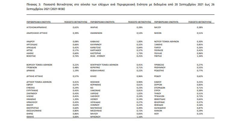 Συγκεντρωτικά στοιχεία την εβδομάδα αναφοράς 20 Σεπτεμβρίου 2021 – 26 Σεπτεμβρίου 2021 (2021-W38)
