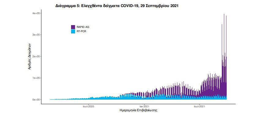 Δείγματα που έχουν ελεγχθεί: Από την 1η Ιανουαρίου 2020 μέχρι σήμερα, στα εργαστήρια που διενεργούν ελέγχους για τον νέο κορωνοϊό (SARS-CoV-2) και που δηλώνουν συστηματικά το σύνολο των δειγμάτων που ελέγχουν, έχουν συνολικά ελεγχθεί 6.617.743 κλινικά δείγματα ενώ από Μονάδες Υγείας και Κλιμάκια του ΕΟΔΥ που διενεργούν ελέγχους Rapid Ag έχουν ελεγχθεί 13.370.597 δείγματα. O μέσος όρος του επταημέρου είναι 196.171 δειγματοληπτικοί έλεγχοι.