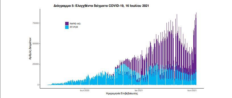 Δείγματα που έχουν ελεγχθεί: Από την 1η Ιανουαρίου 2020 μέχρι σήμερα, στα εργαστήρια που διενεργούν ελέγχους για τον νέο κορωνοϊό (SARS-CoV-2) και που δηλώνουν συστηματικά το σύνολο των δειγμάτων που ελέγχουν, έχουν συνολικά ελεγχθεί 5.609.398 κλινικά δείγματα ενώ από Μονάδες Υγείας και Κλιμάκια του ΕΟΔΥ που διενεργούν ελέγχους Rapid Ag έχουν ελεγχθεί 5.951.922 δείγματα. O μέσος όρος του επταημέρου είναι 69.608 δειγματοληπτικοί έλεγχοι.