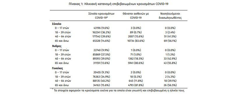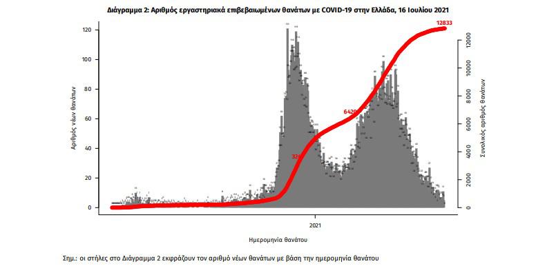 Οι νέοι θάνατοι ασθενών με COVID-19 είναι 14, ενώ από την έναρξη της επιδημίας έχουν καταγραφεί συνολικά 12.833 θάνατοι. Το 95.1% είχε υποκείμενο νόσημα ή/και ηλικία 70 ετών και άνω.