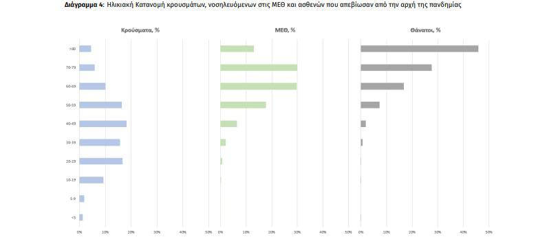 Ακολούθως παρουσιάζεται η ηλικιακή κατανομή των (α) συνολικών κρουσμάτων, (β) των περιστατικών που κατέληξαν σε θάνατο και (γ) των ασθενών που νοσηλεύονται διασωληνωμένοι: