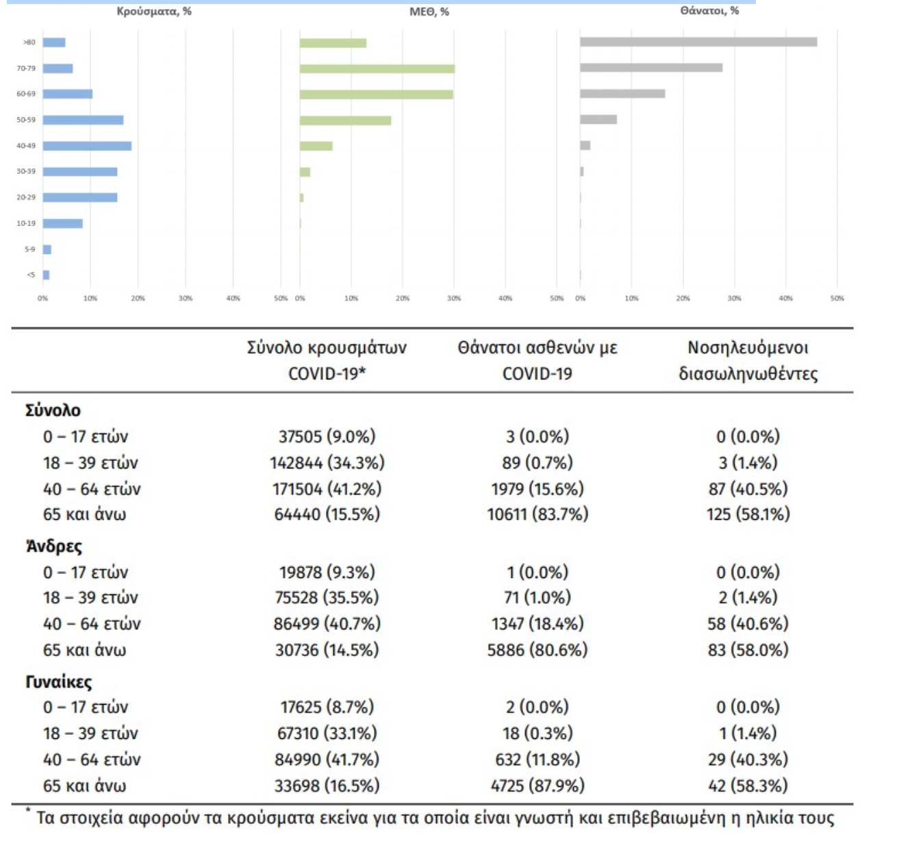 Οι νέοι θάνατοι ασθενών με COVID-19 είναι 8, ενώ από την έναρξη της επιδημίας έχουν καταγραφεί συνολικά 12.682 θάνατοι. Το 95.2% είχε υποκείμενο νόσημα ή/και ηλικία 70 ετών και άνω.