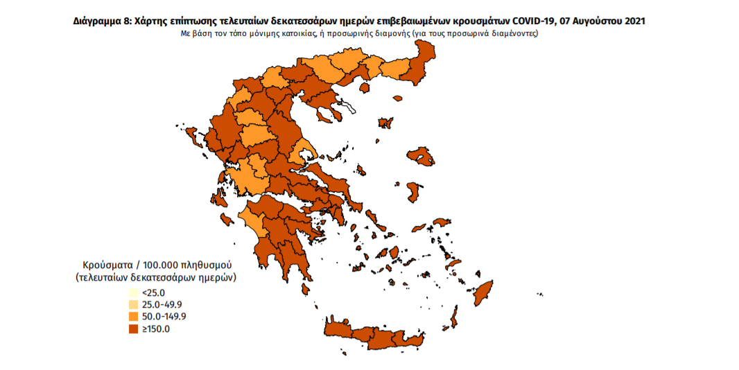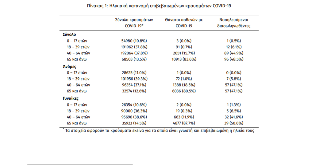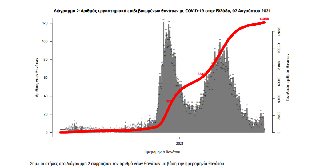 Οι νέοι θάνατοι ασθενών με COVID-19 είναι 10, ενώ από την έναρξη της επιδημίας έχουν καταγραφεί συνολικά 13.058 θάνατοι. Το 95.2% είχε υποκείμενο νόσημα ή/και ηλικία 70 ετών και άνω
