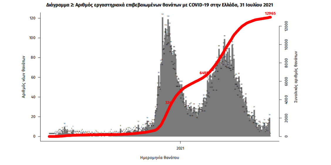 Οι νέοι θάνατοι ασθενών με COVID-19 είναι 17, ενώ από την έναρξη της επιδημίας έχουν καταγραφεί συνολικά 12.965 θάνατοι. Το 95.2% είχε υποκείμενο νόσημα ή/και ηλικία 70 ετών και άνω